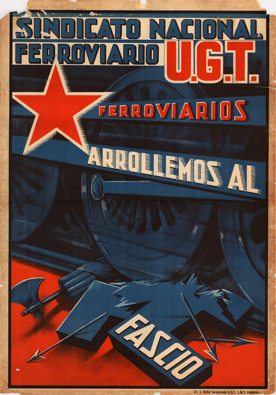 1937 Sindicato Nacional Ferroviario. U.G.T. Ferroviarois arrollemos al fascio