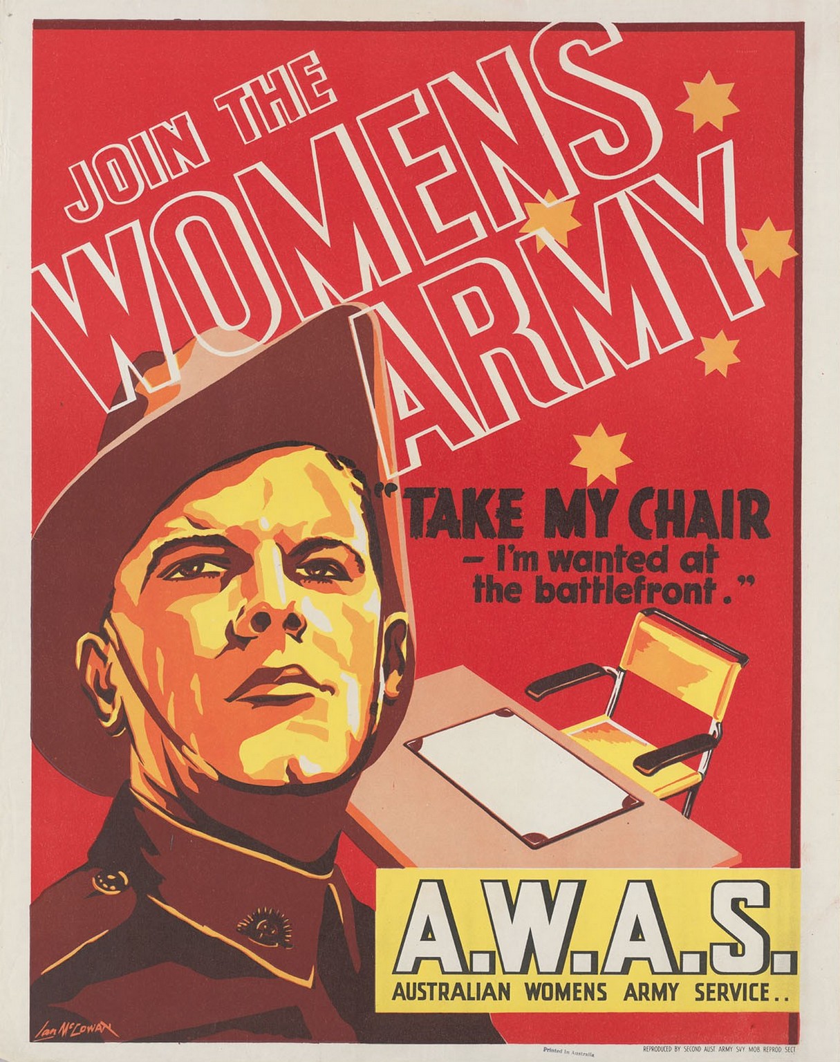 1945 Join The Womens Army 'Take My Chair - I'm wanted at the battlefront.' A.W.A.S.