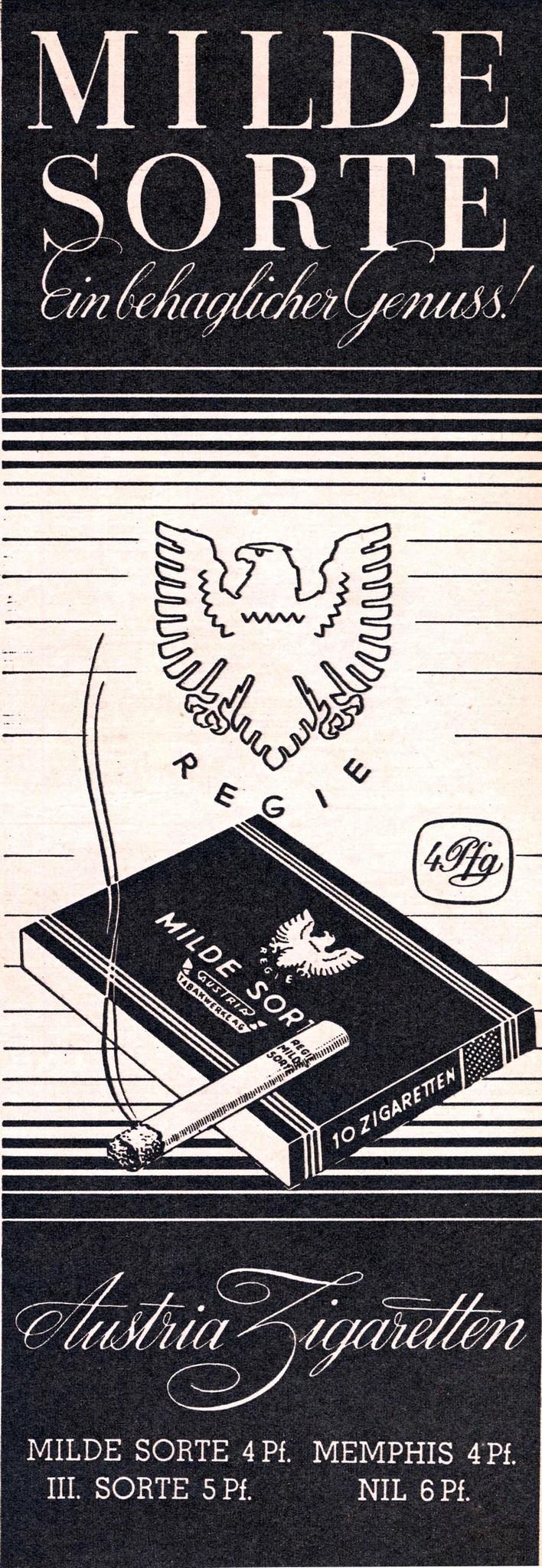 1941 Milde Sorte Einbehaglicher Genuss! Austria Zigaretten