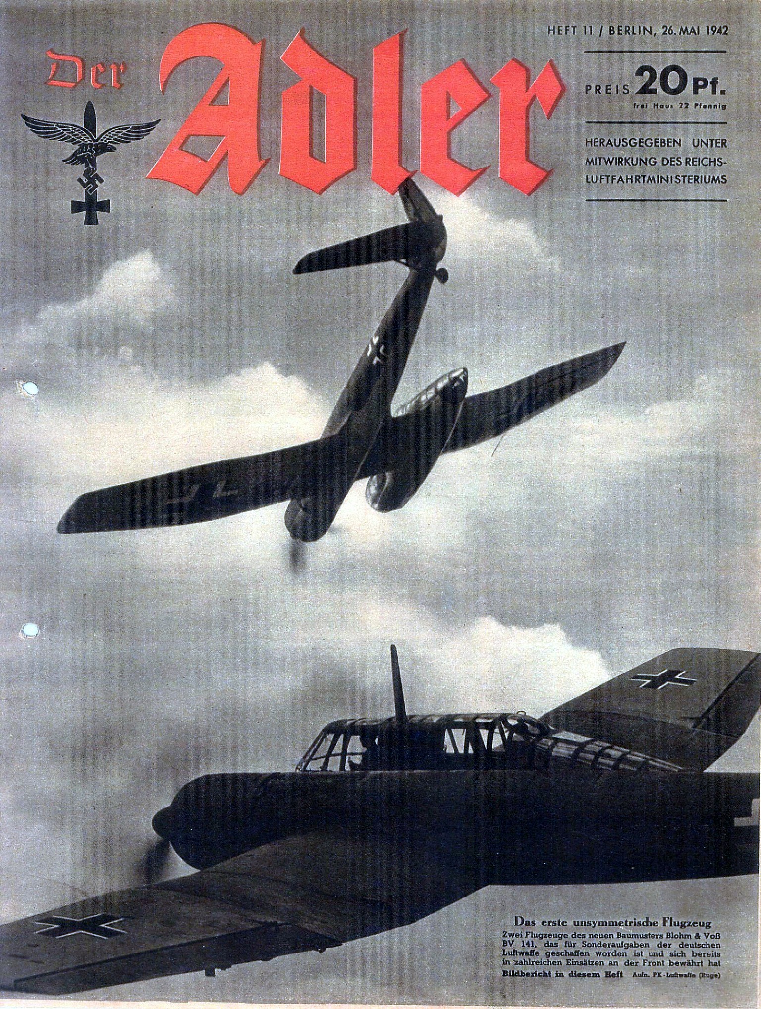 1942 Der Adler Heft 11 Berlin 26 Mai 1942. Das erste unsymmetrische Flugzeug