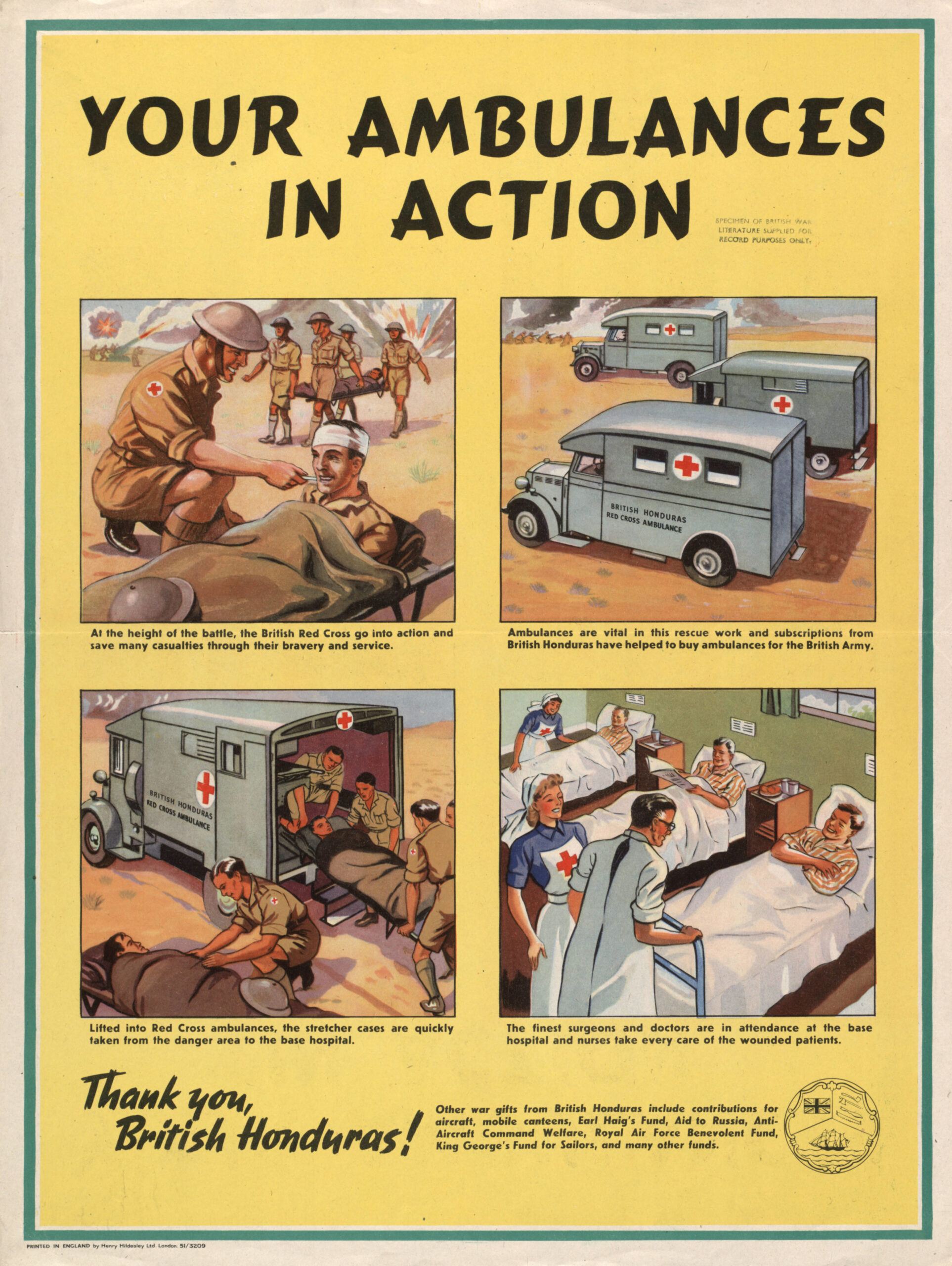 1943 Your Ambulances In Action. Thank you, British Honduras!