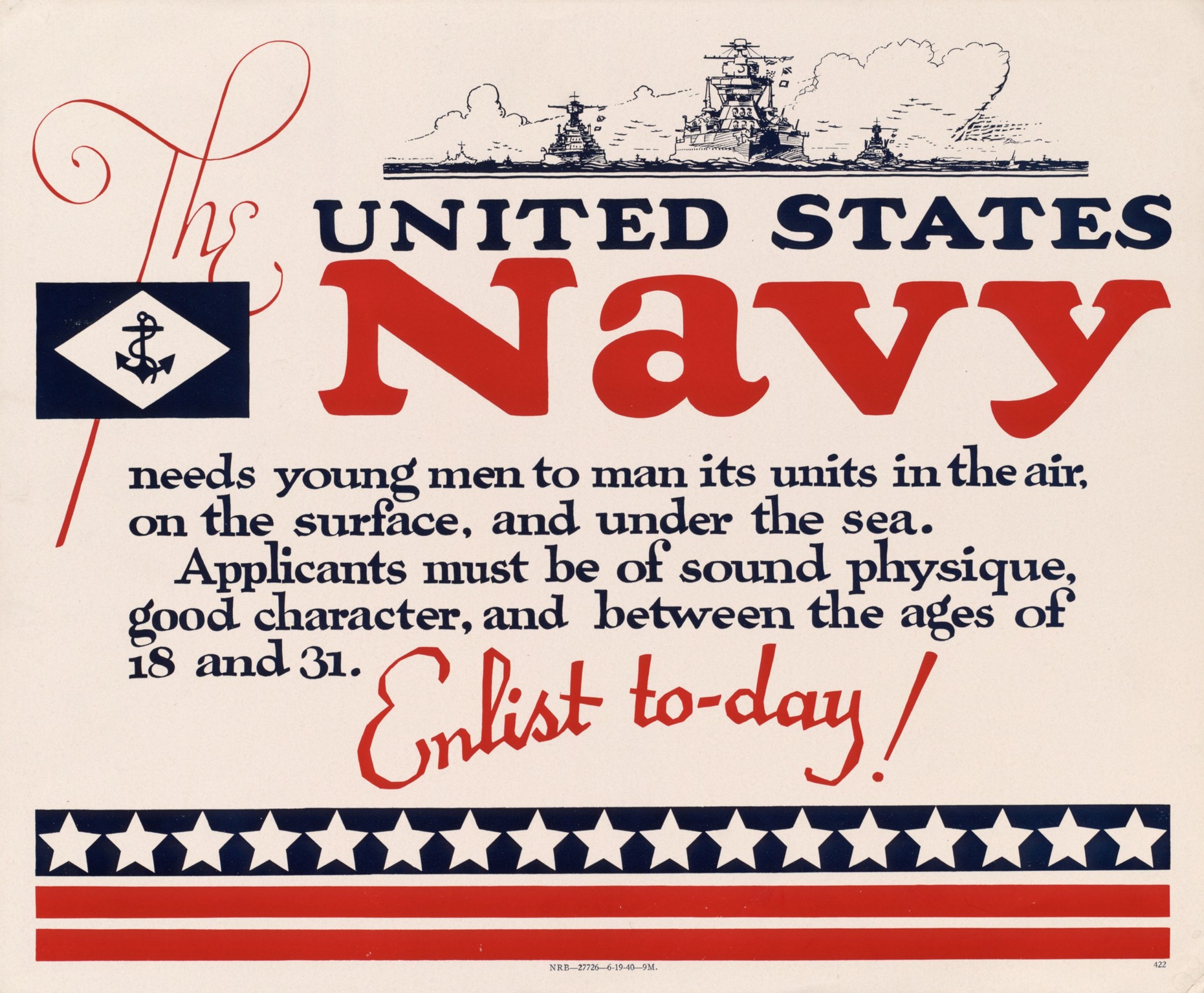 1940 The United States Navy needs your men to man its units in the air, on the surface, and under the sea