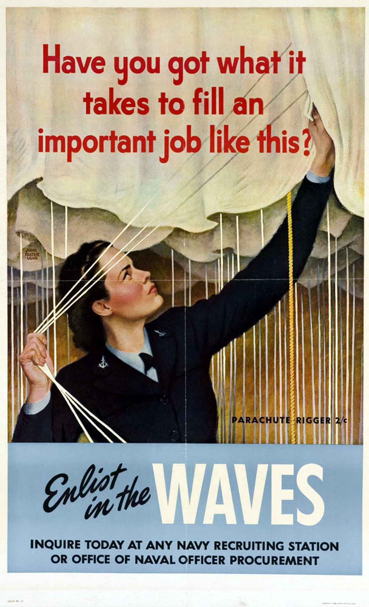 1944 Have you got what it takes to fill and important job like this. Parachute Rigger. Enlist in the Waves