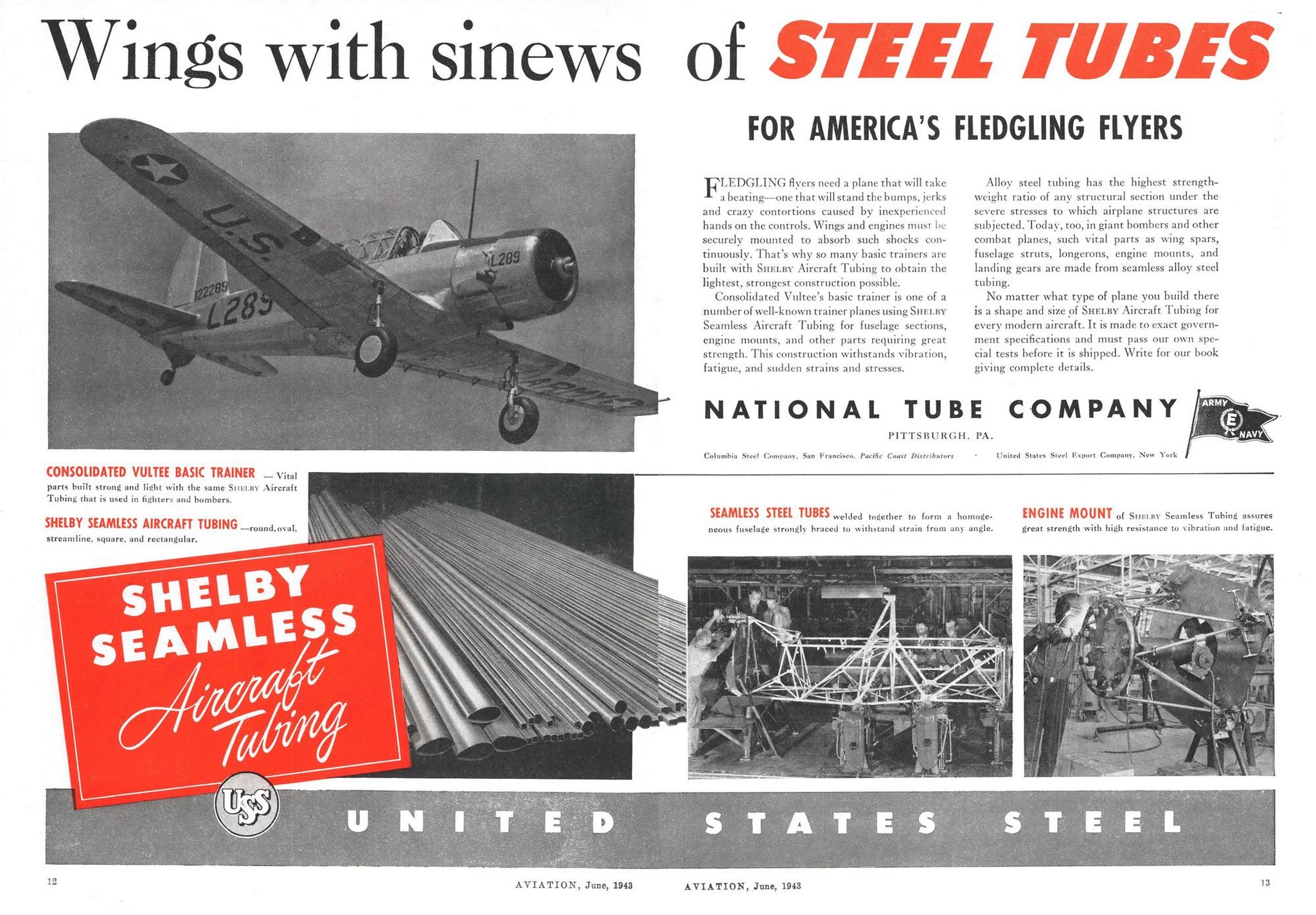 1943 Wings with sinews of Steel Tubes For America’s Fledgling Flyers. United States Steel