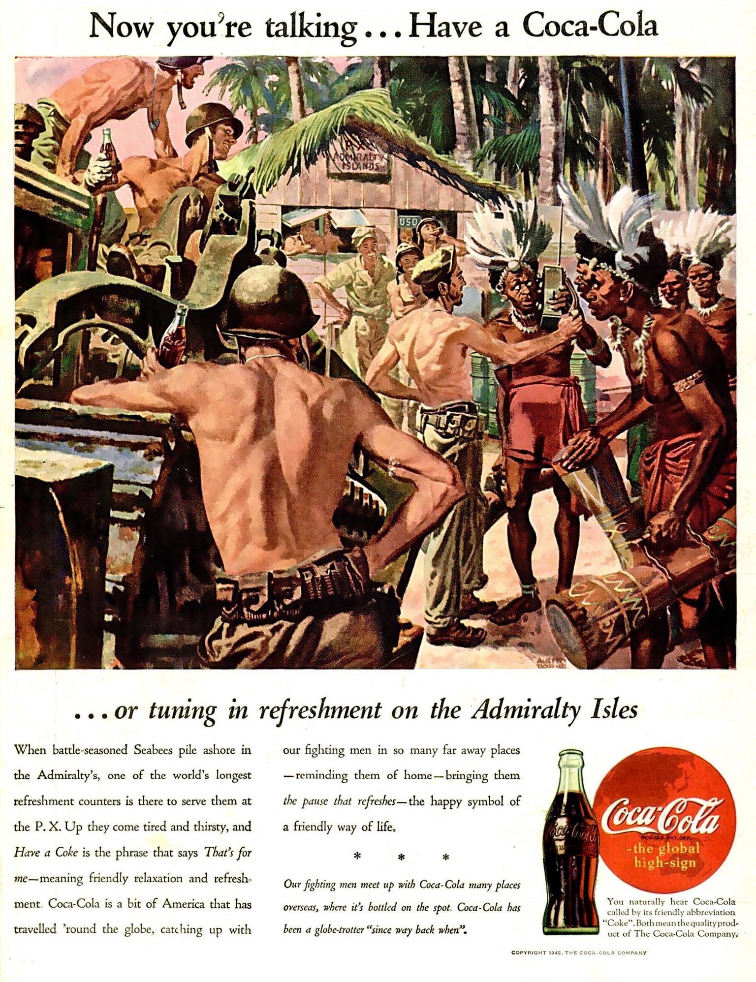 1945 Now you're talking... Have a Coca-Cola ... or tuning in refreshment on the Admiralty Isles