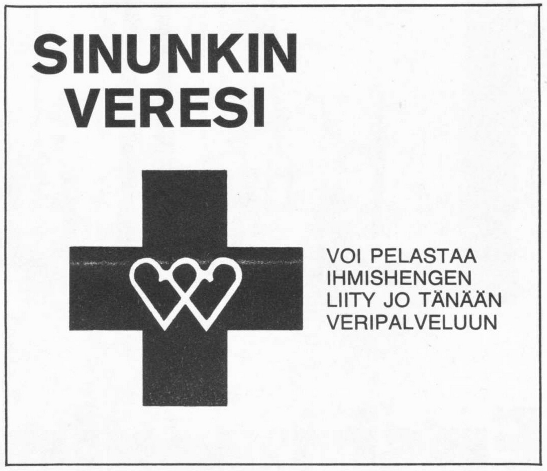 1975 Sinunkin Veresi Voi Pelastaa Ihmishengen. Liity Jo Tänään Veripalveluun