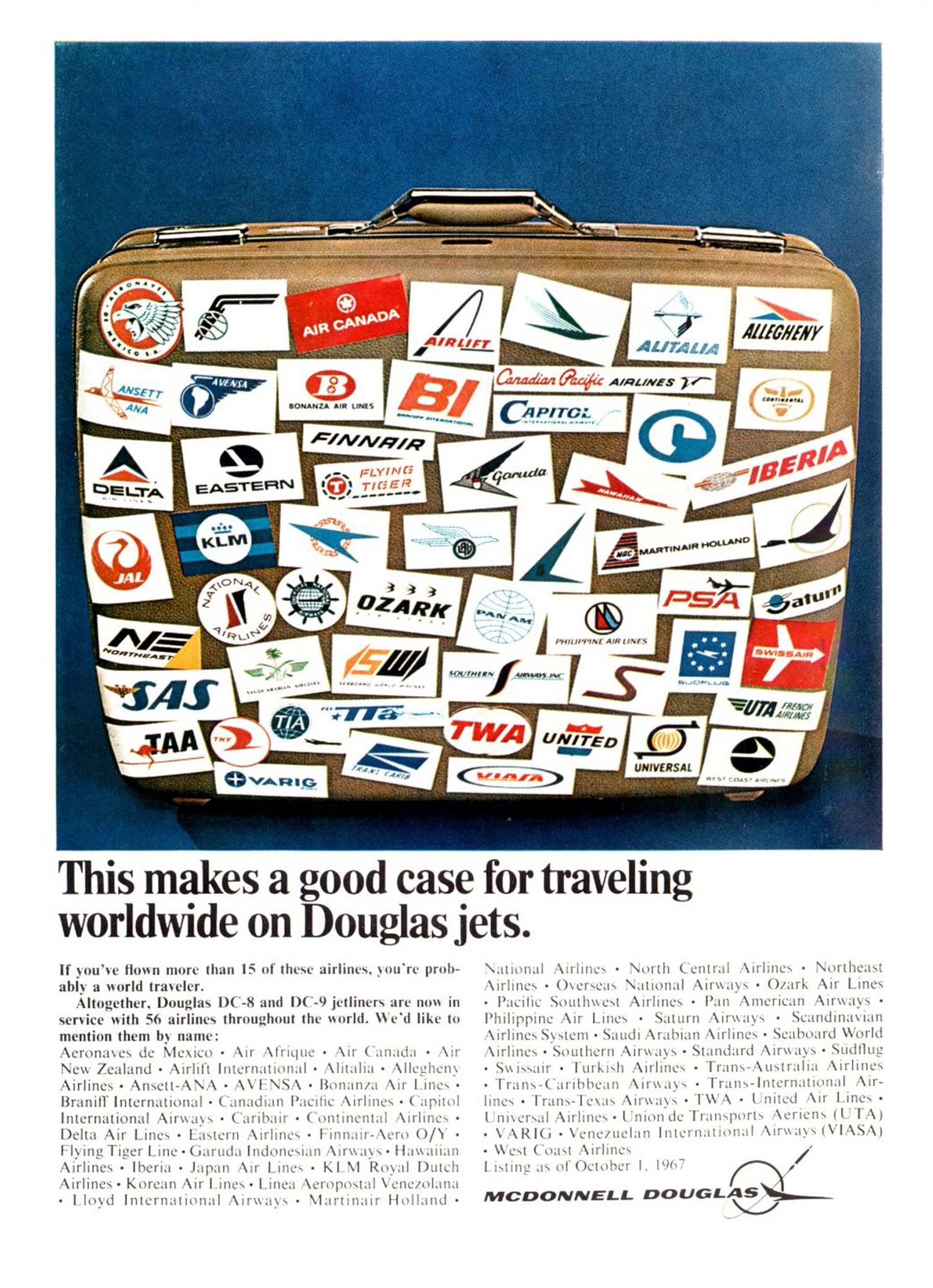 1968 This makes a good case for traveling worldwide on Douglas jets