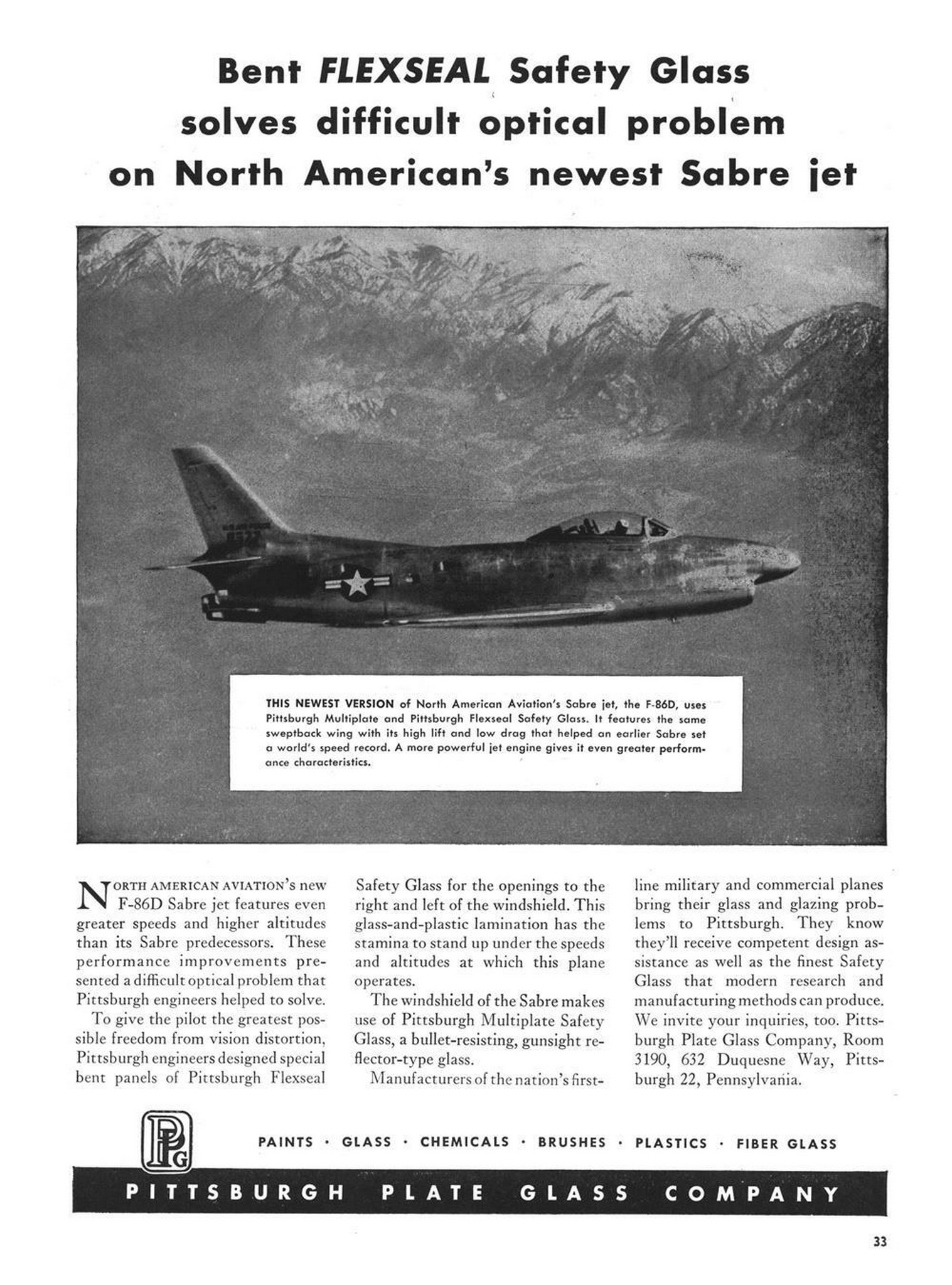 1953 Bent Flexseal Safety Glass at North American's newest Sabre jet