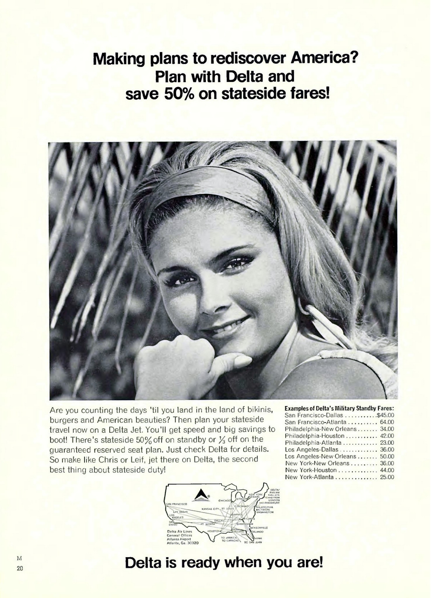 1969 Making plans to rediscover America. Plan with Delta and save 50pros on stateside fares!