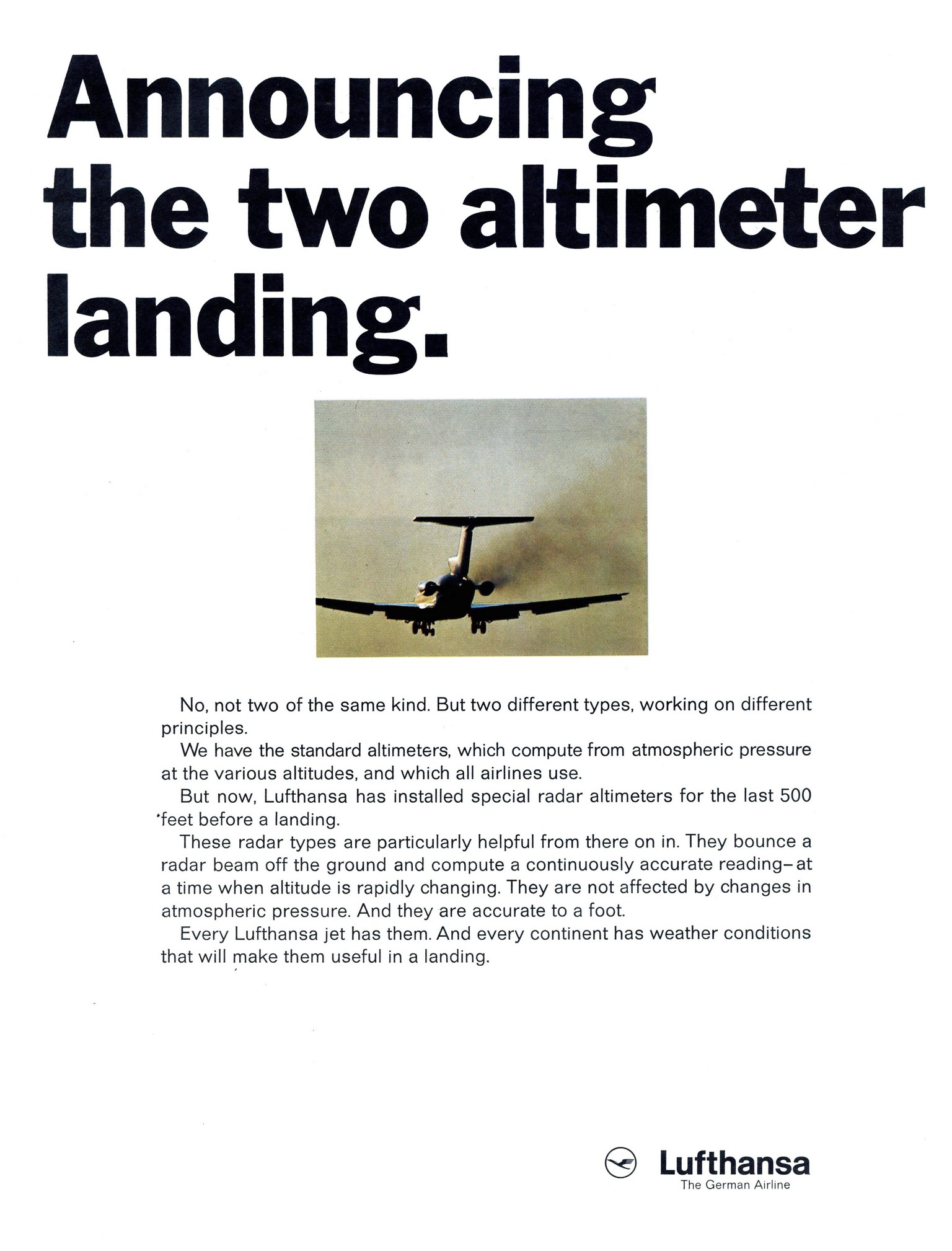 1967 Announcing the two altimeter landing. Lufthansa