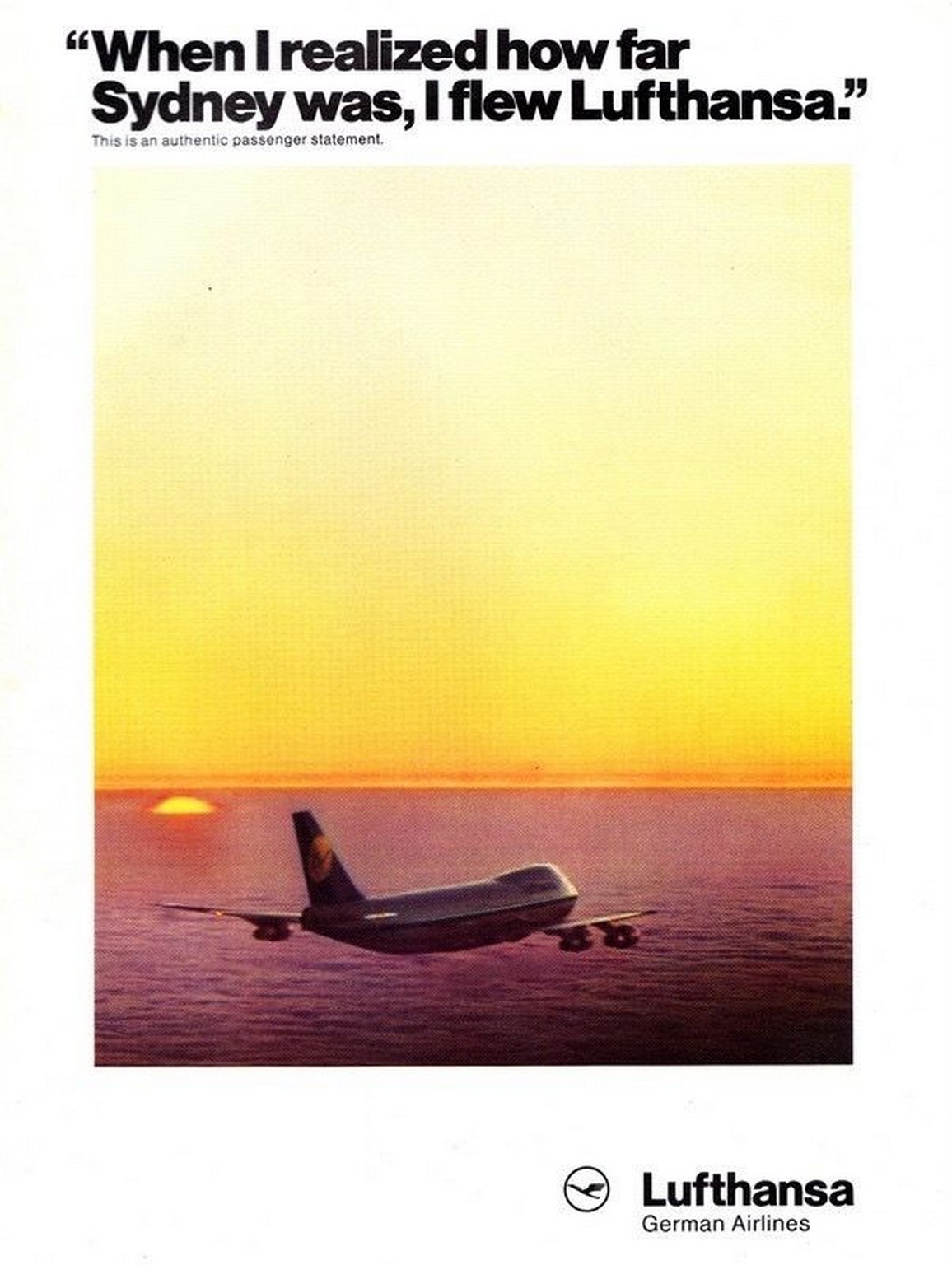 1979 'When I realized how far Sydney was, I flew Lufthansa.' Lufthansa