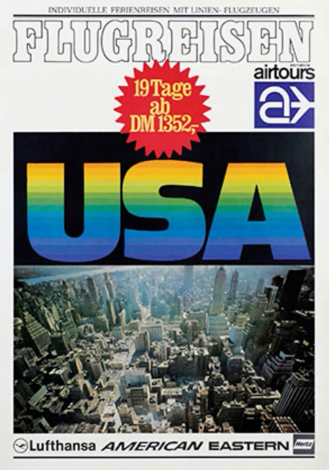 1980 Flugreisen airtours USA. Lufthansa - American - Eastern