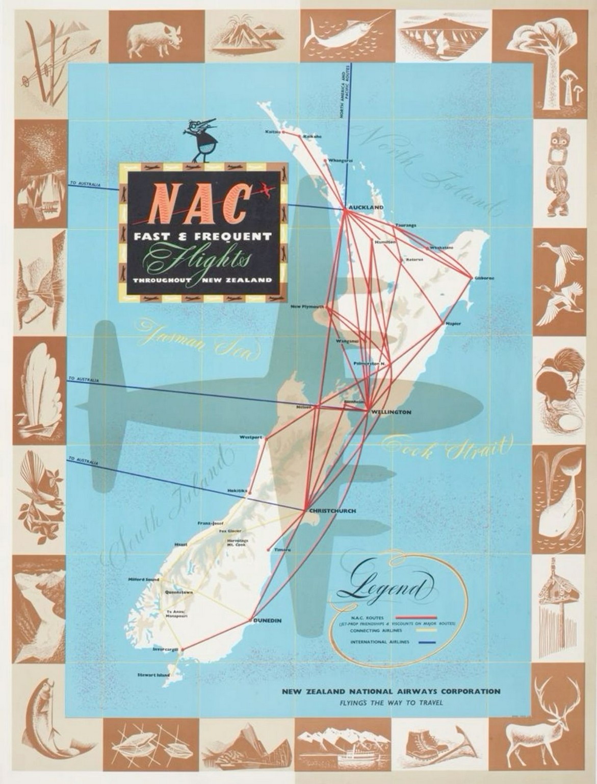 1952 NAC Fast & Frequent Flights Through New Zealand. New Zealand National Airways Corporation