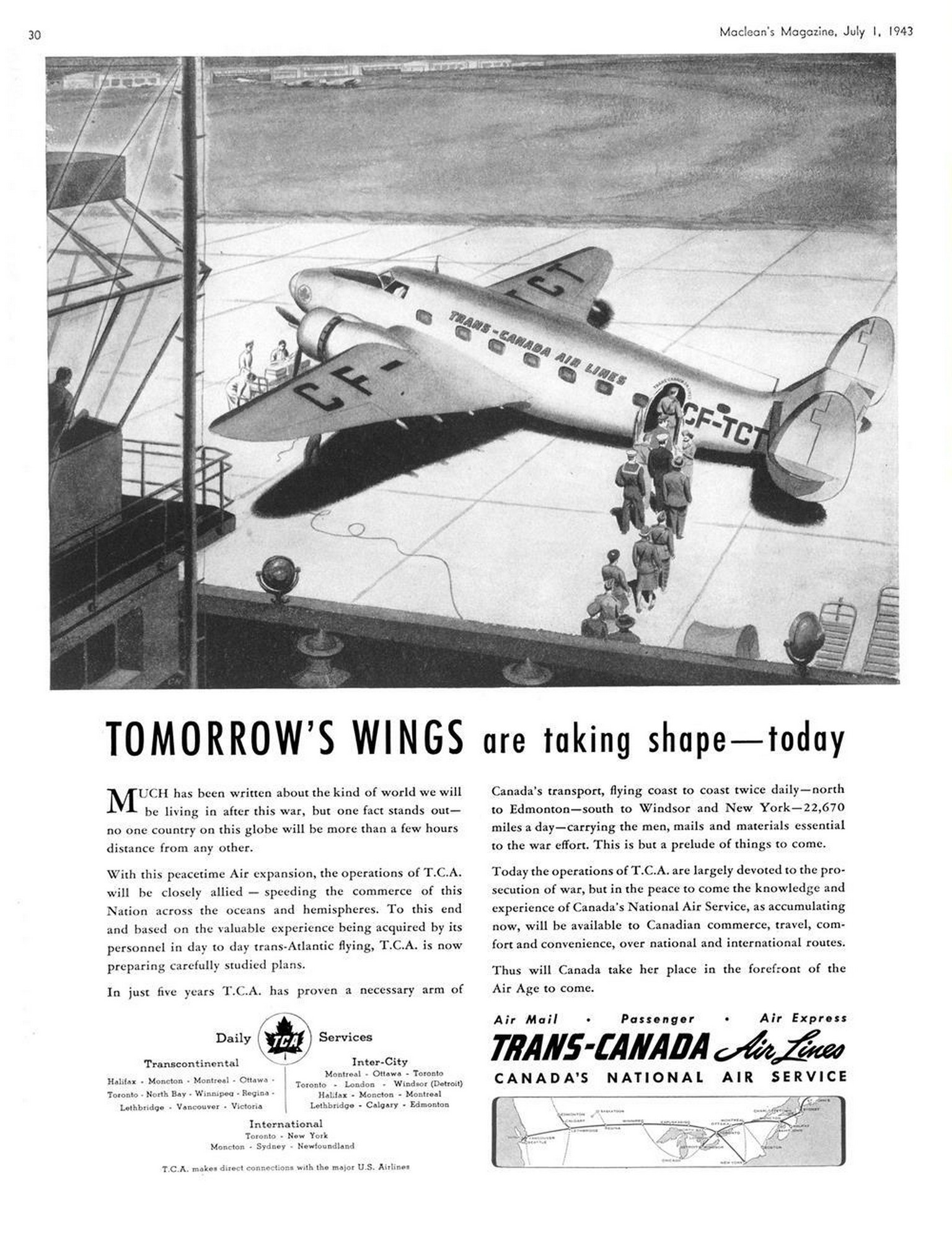 1943 Tomorrow’s Wings are taking shape – today. Trans-Canada Air Lines. TCA