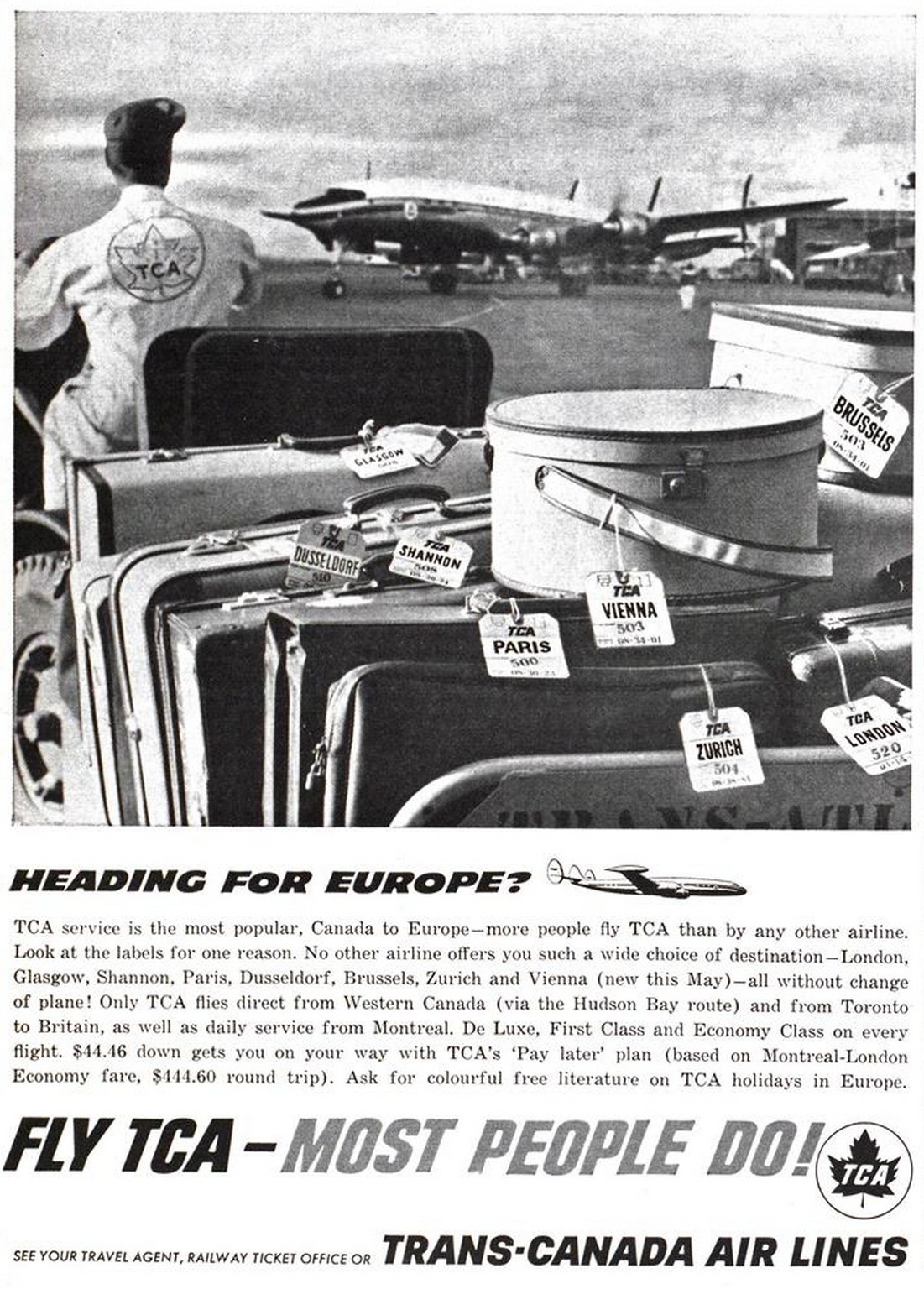 1959 Heading For Europe. Fly TCA - Most People Do!