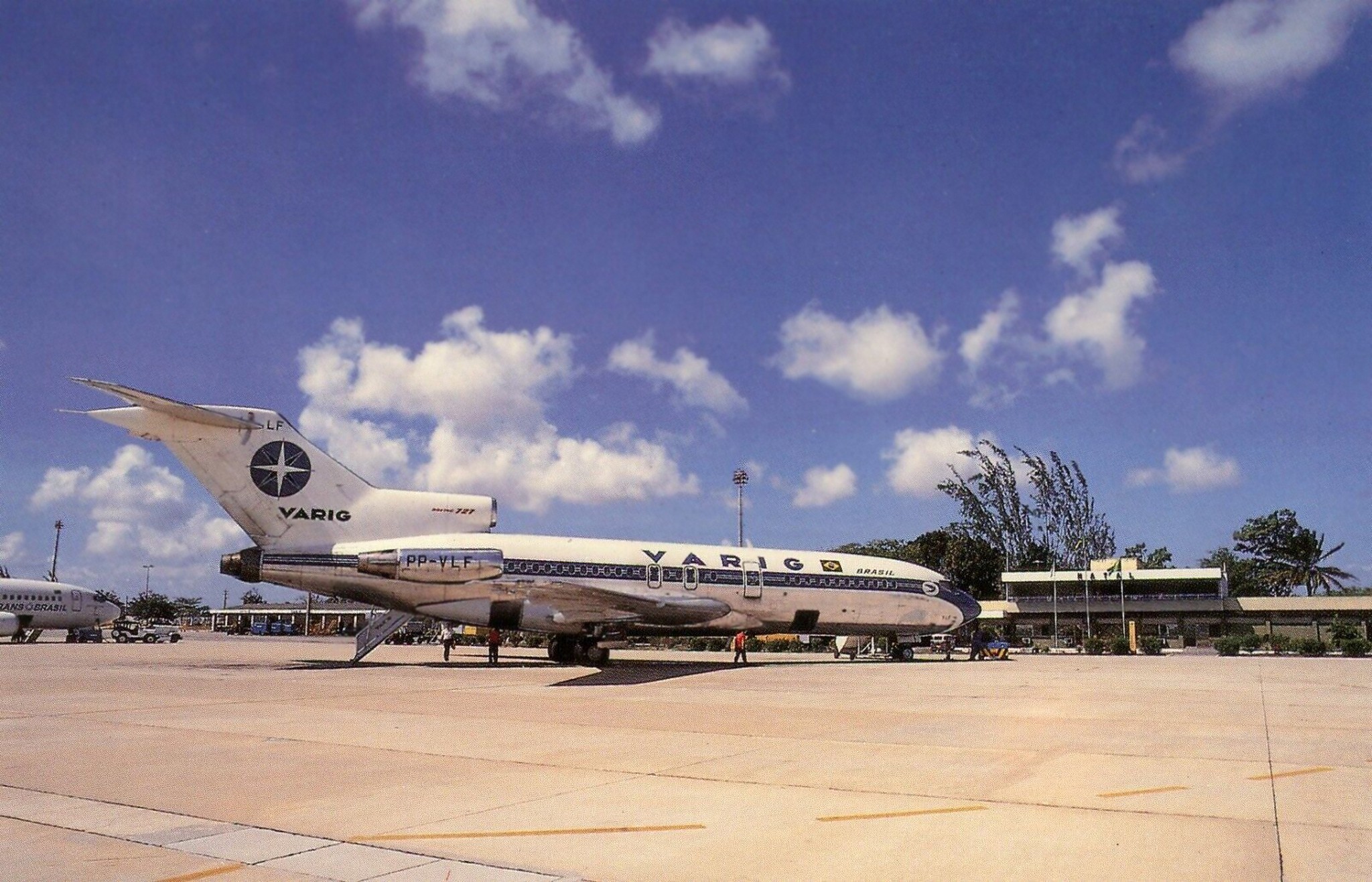 1990 Varig Boeing 727 at Natal Airport Brazil Postcard PPVLF
