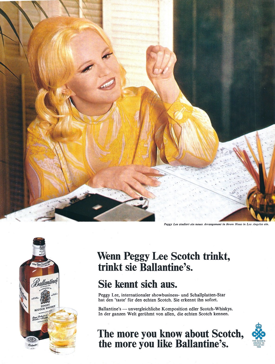 1969 Wenn Peggy Lee Scotch trinkt, trinkt sie Ballantine’s. Sie kennt sich aus