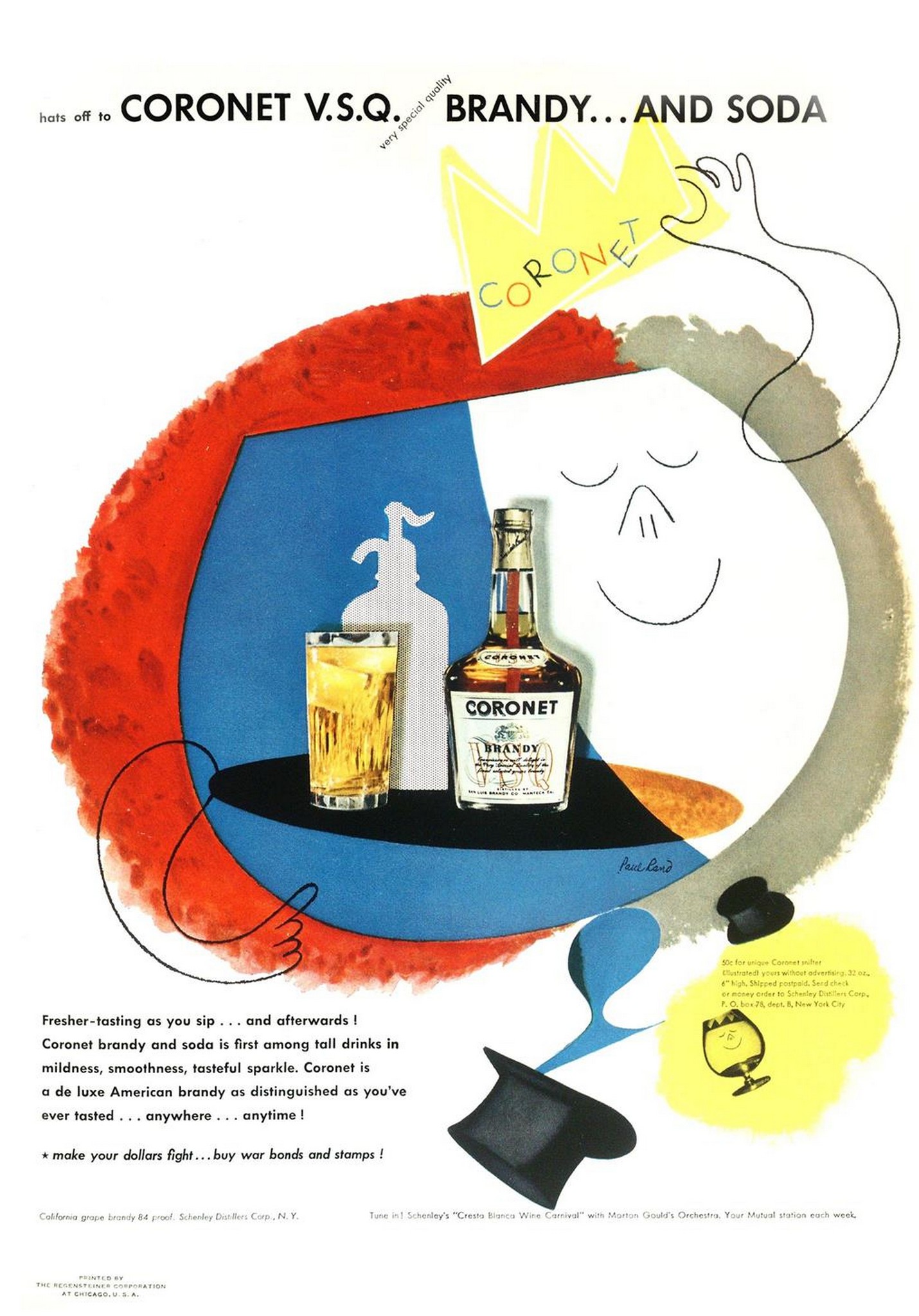 1943 hats off to Coronet V.S.Q. Brandy… And Soda