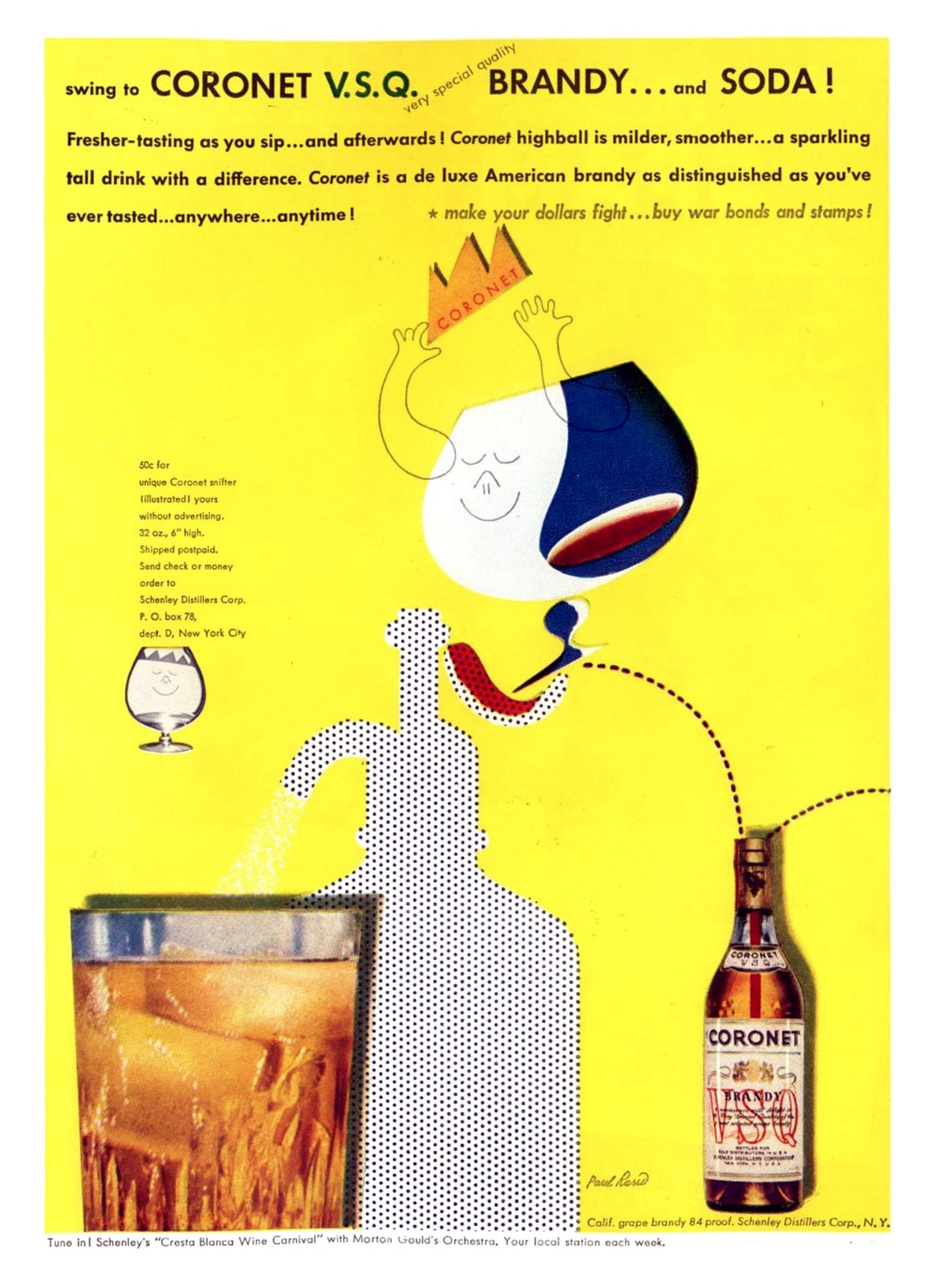 1943 swing to Coronet V.S.Q. Brandy… and Soda!