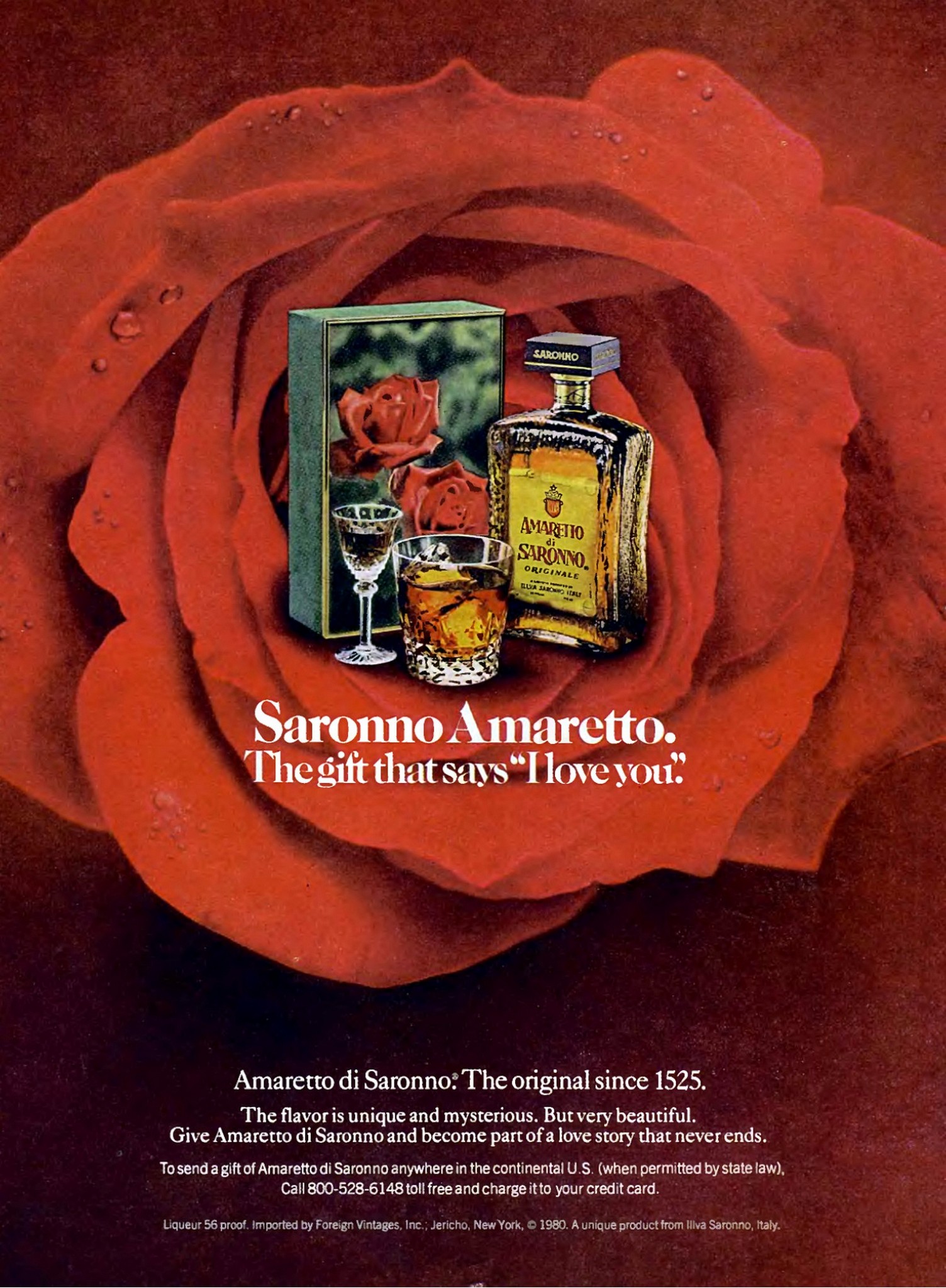 1980 Saronno Amaretto. The gift that says 'I love you'
