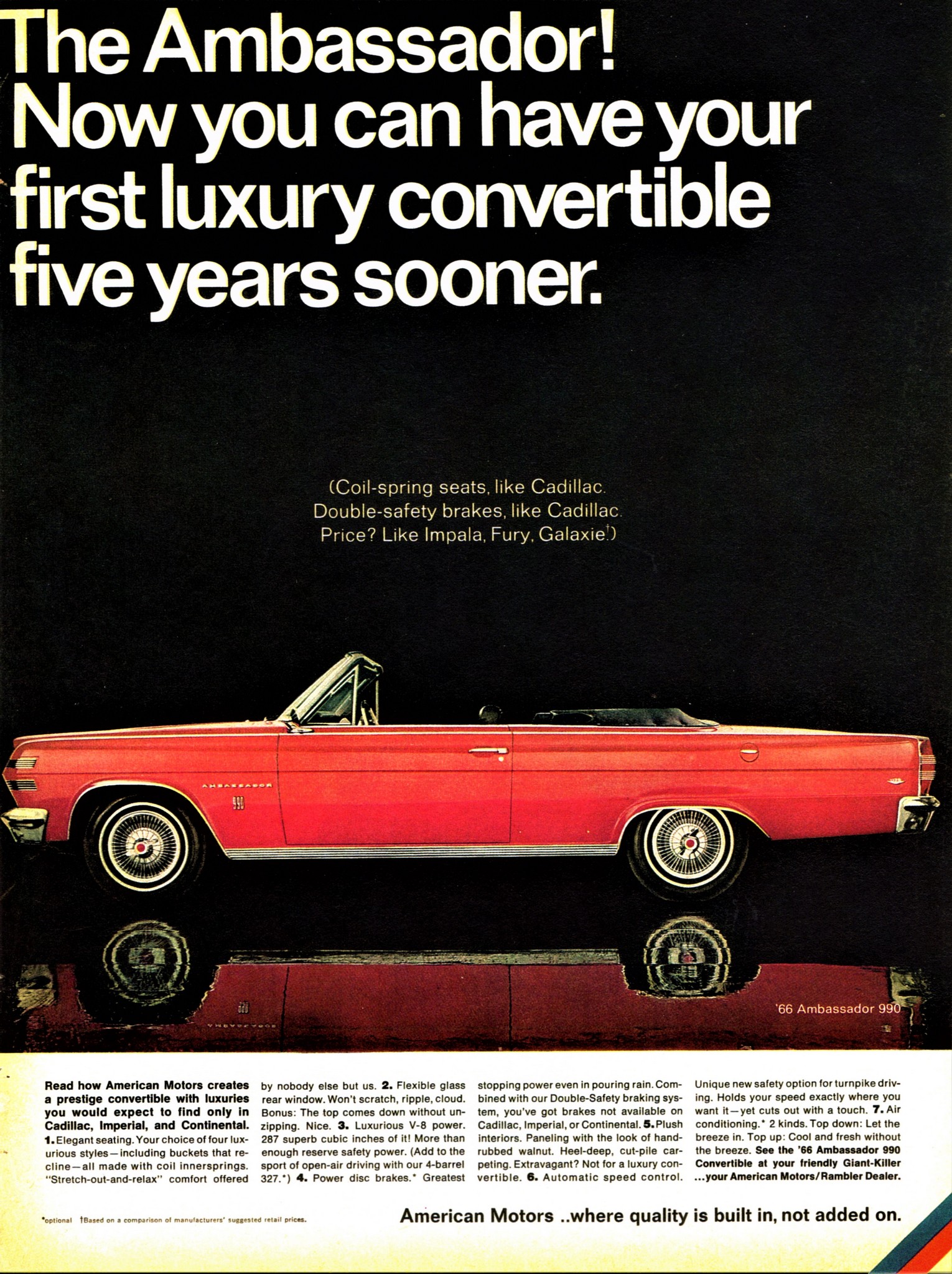 1966 American Motors Ambassador 990 Convertible. Now you can have your first luxury convertible five years sooner