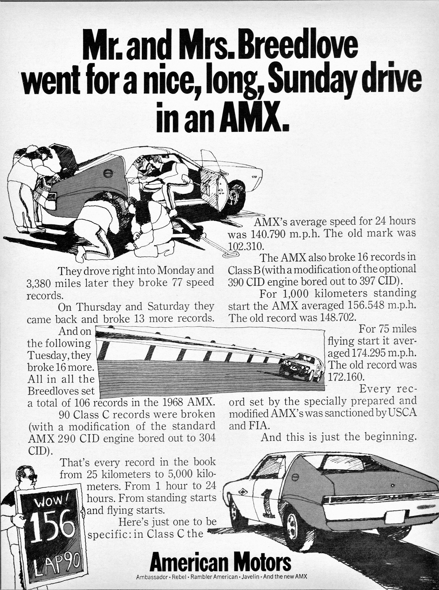1968 American Motors AMX. Mr. and Mrs. Breedlove went for a nice, long, Sunday drive in an AMX