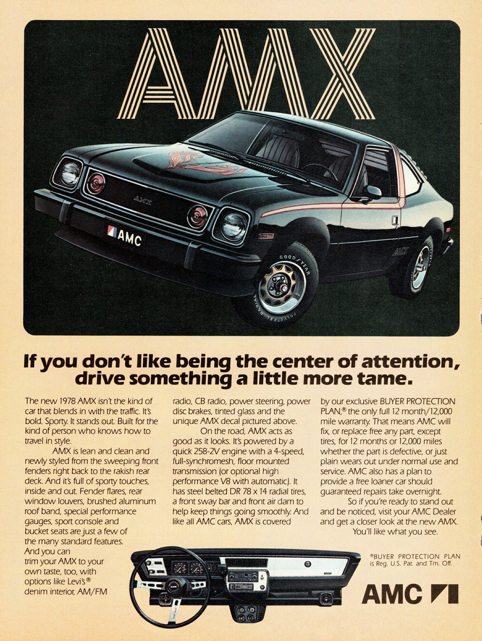 1978 AMC AMX. If you don’t like being in the center of attention, drive something a little more tame