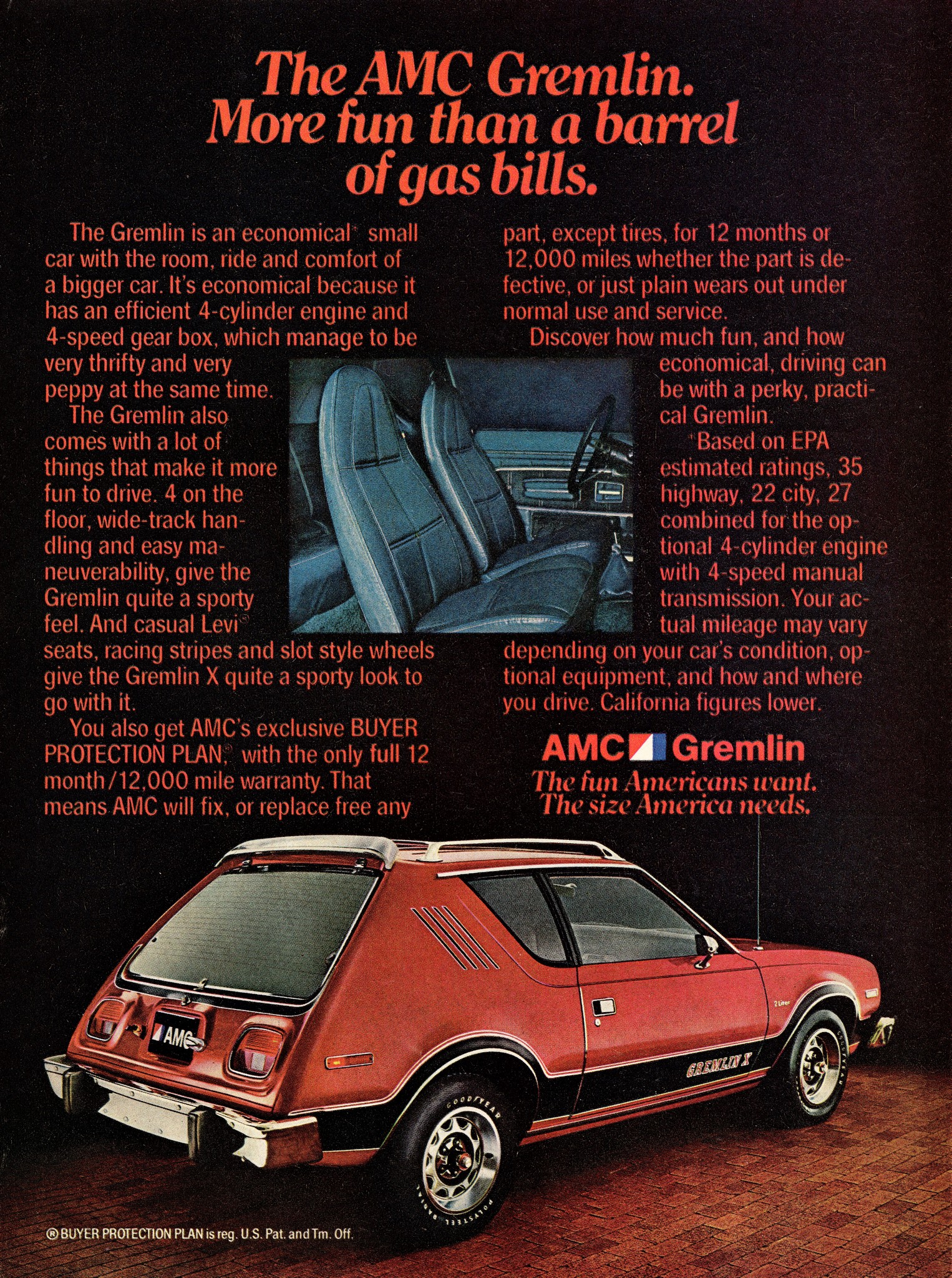 1978 AMC Gremlin X. More fun than a barrel of gas bills