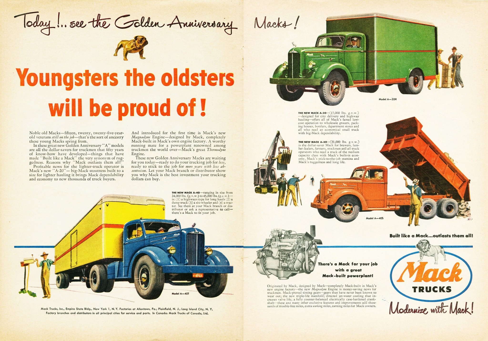 1950 Mack Golden Anniversary Trucks. Youngsters the oldsters will be proud of!