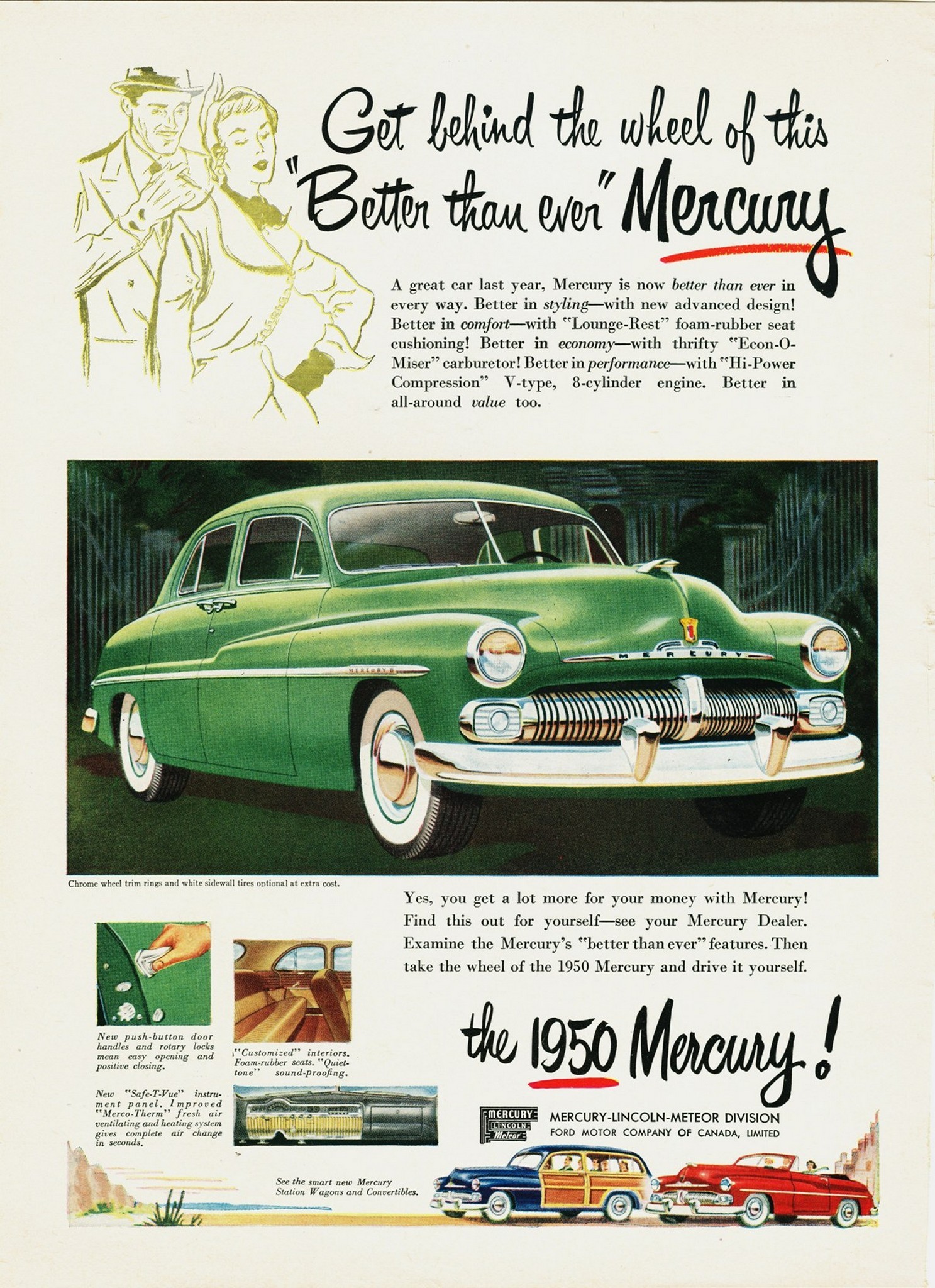 1950 Mercury Sedan. Get behind the wheel of this ‘Better than ever’ Mercury (Canada)