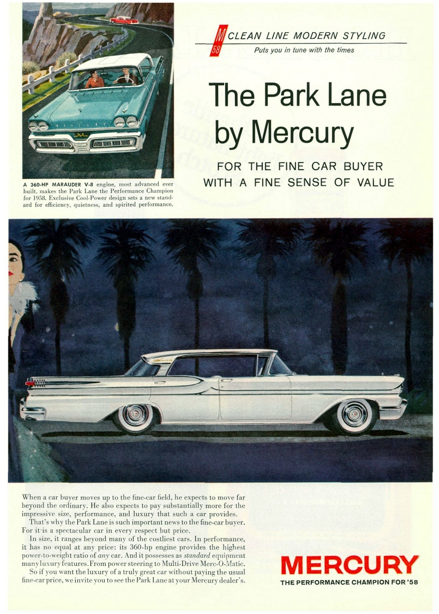 1958 Mercury Park Lane. For The Fine Car Buyer With A Fine Sense Of Value