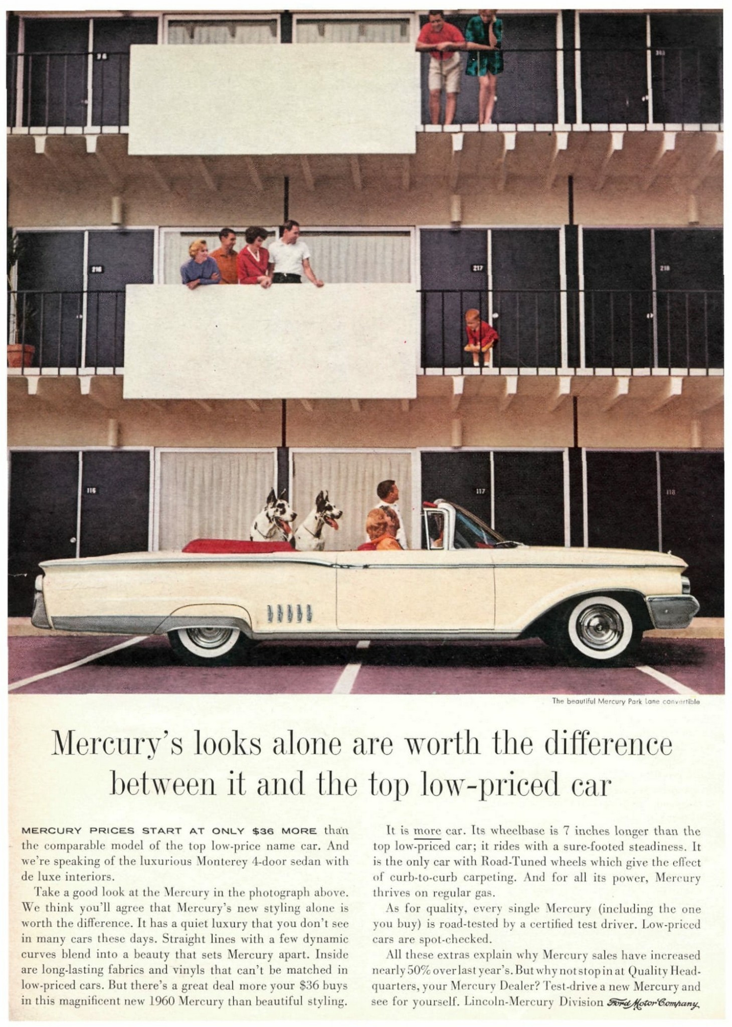 1960 Mercury Park Lane convertible. Mercury's looks alone are worth the difference between it and the top low-priced car