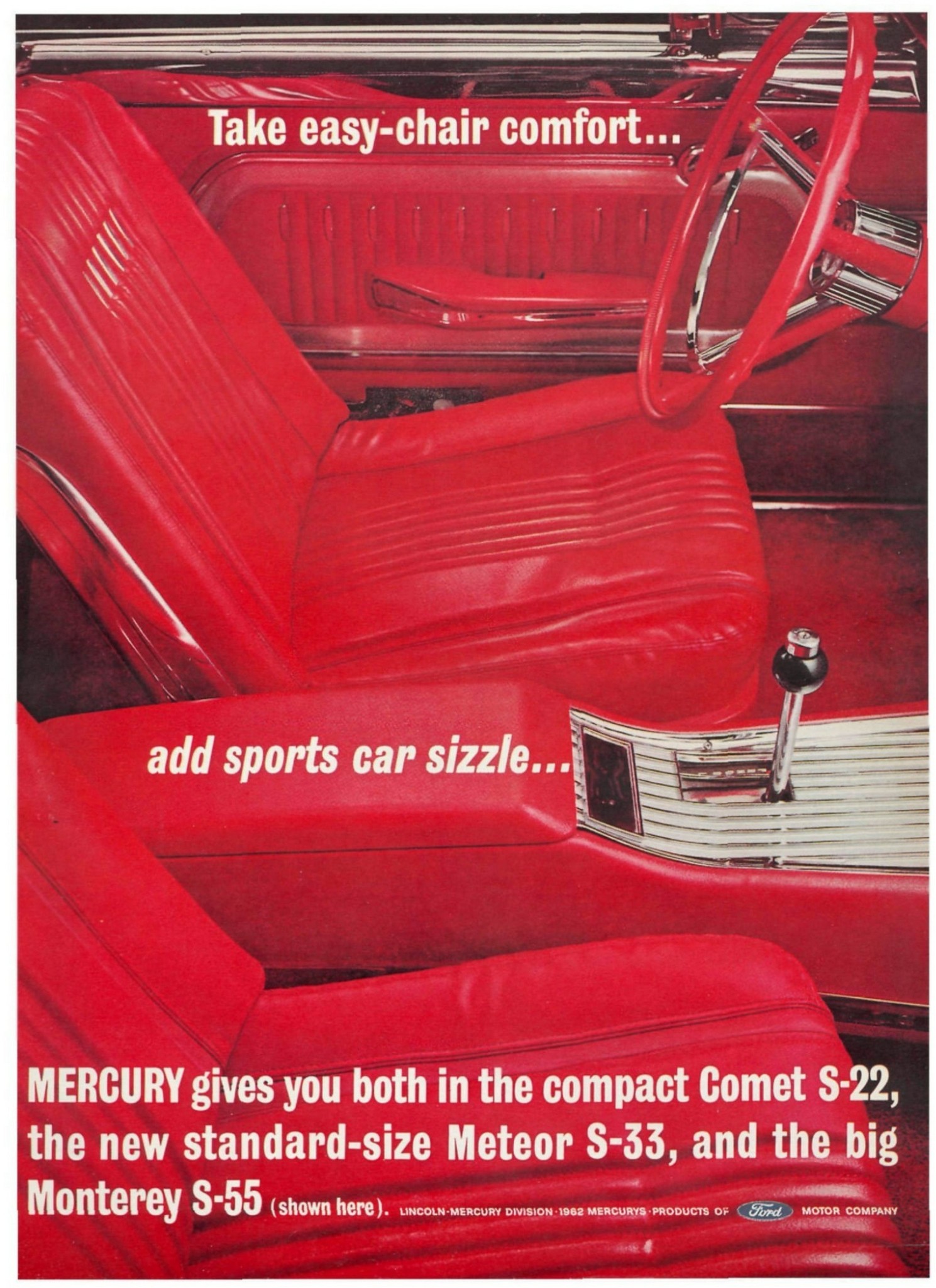 1962 Mercury Comet S-22. Take easy-chair comfort… add sports car sizzle…