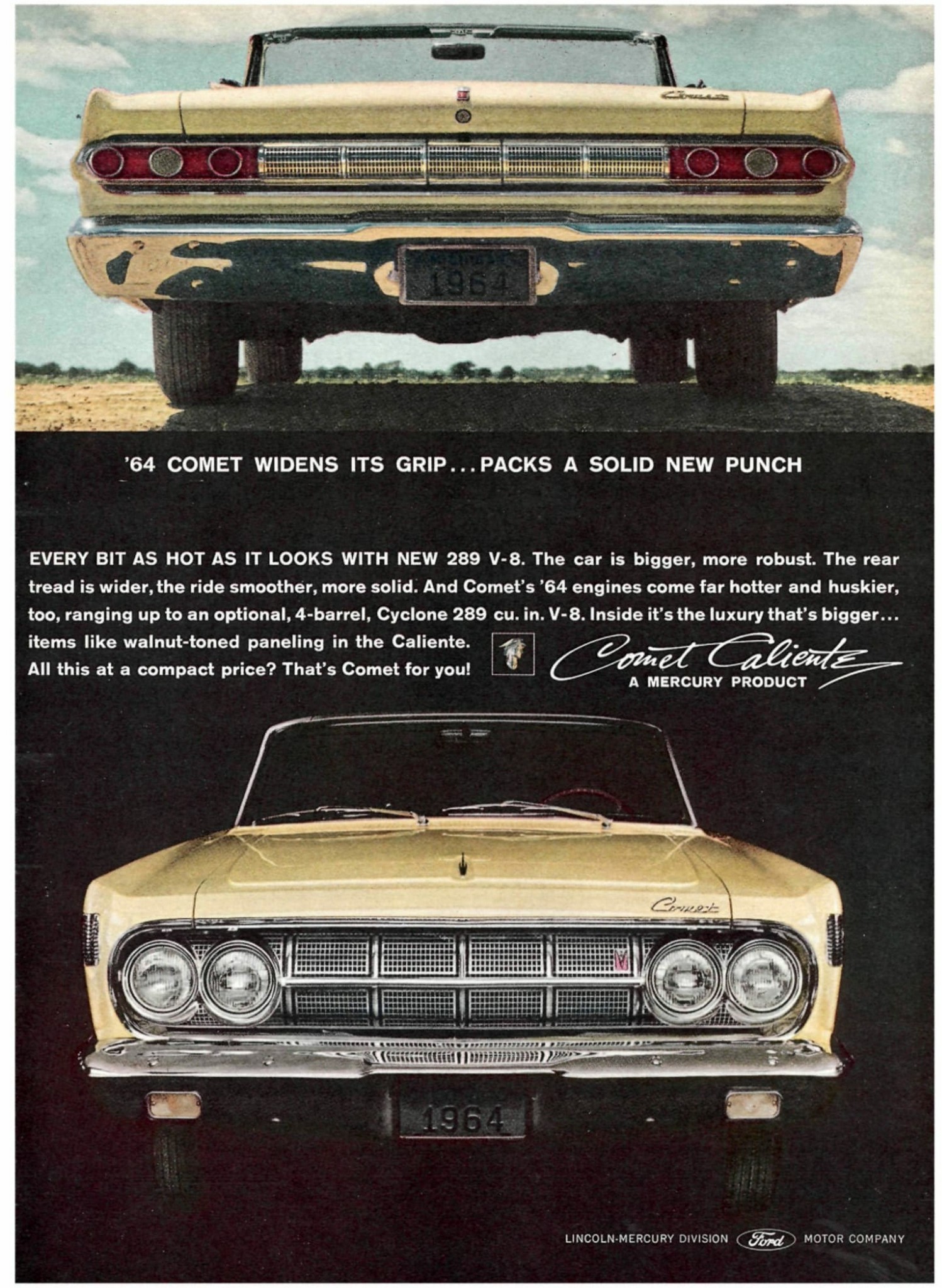 1964 Mercury Comet Caliente. ’64 Comet Widens Its Grip… Packs A Solid New Punch