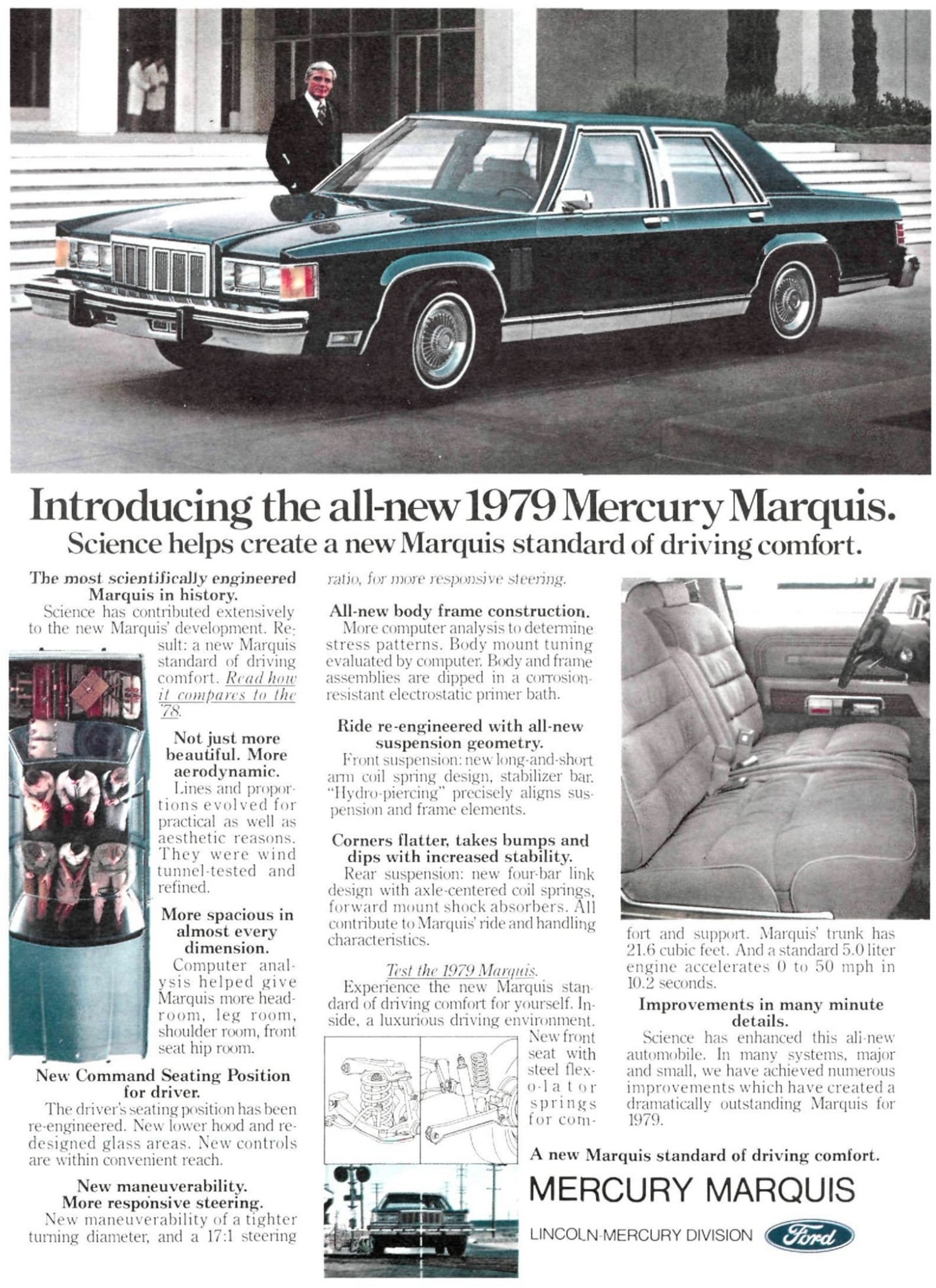 1979 Mercury Marquis. Science helps create a new Marquis standard of driving comfort