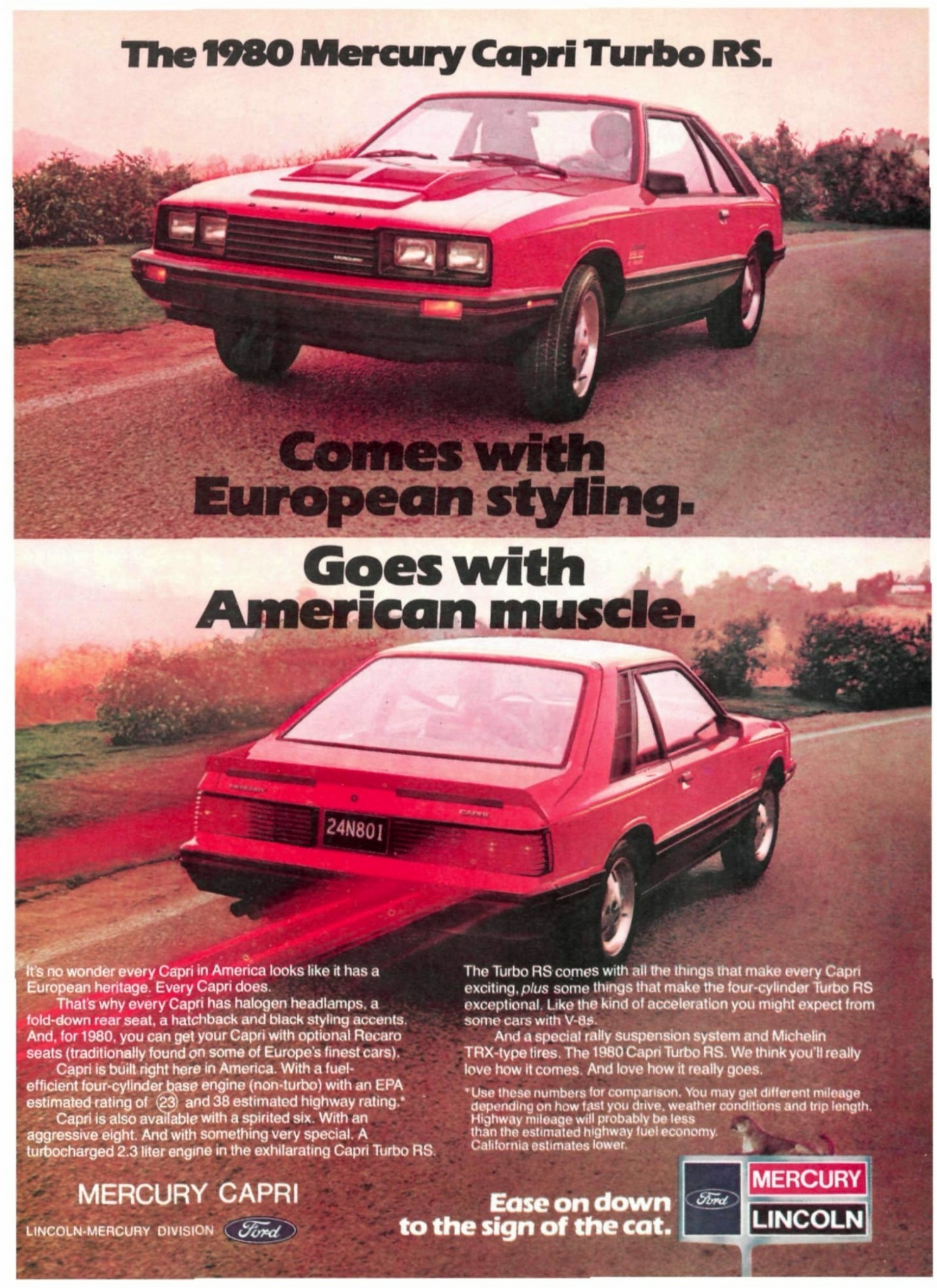 1980 Mercury Capri Turbo RS. Comes with European styling. Goes with American muscle