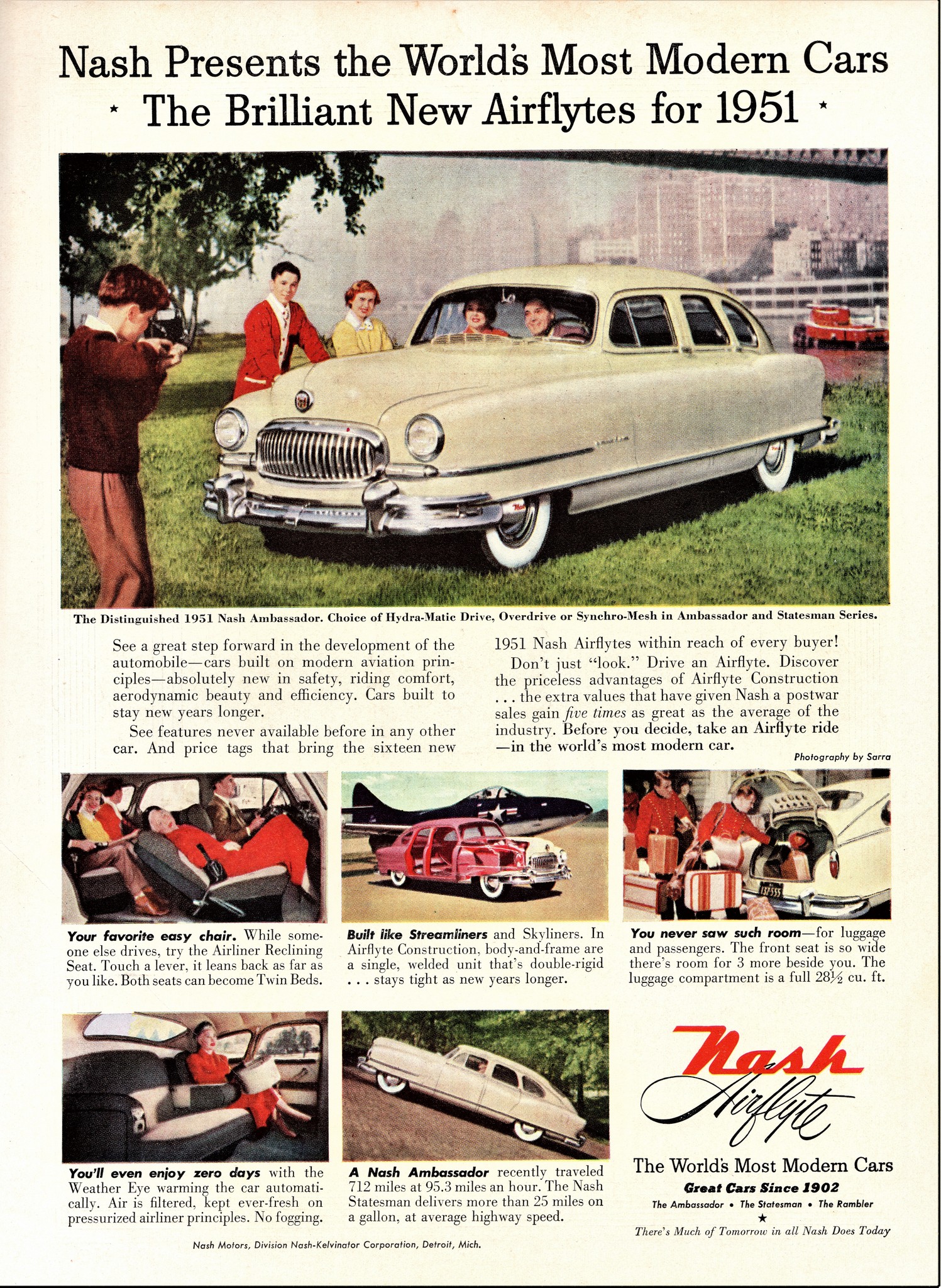 1951 Nash Ambassador Custom 4-Door Sedan. Nash Presents the World’s Most Modern Cars