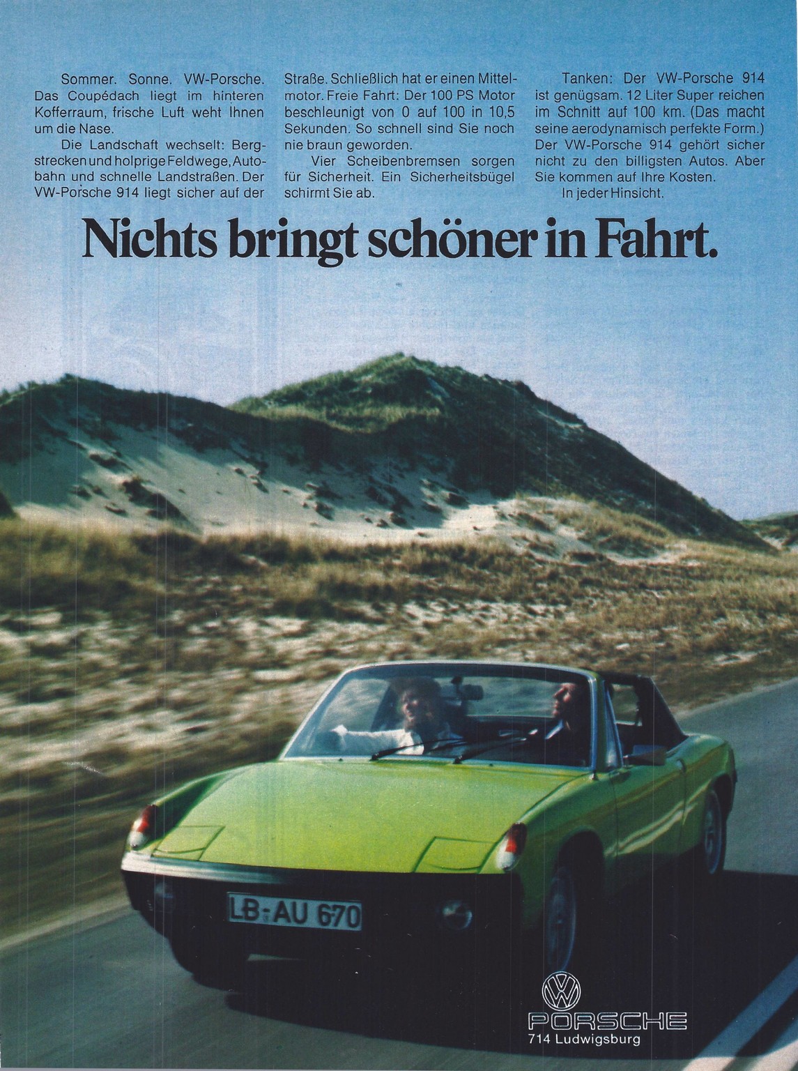 1974 Porsche 914. Nichts bringt schöner in Fahrt