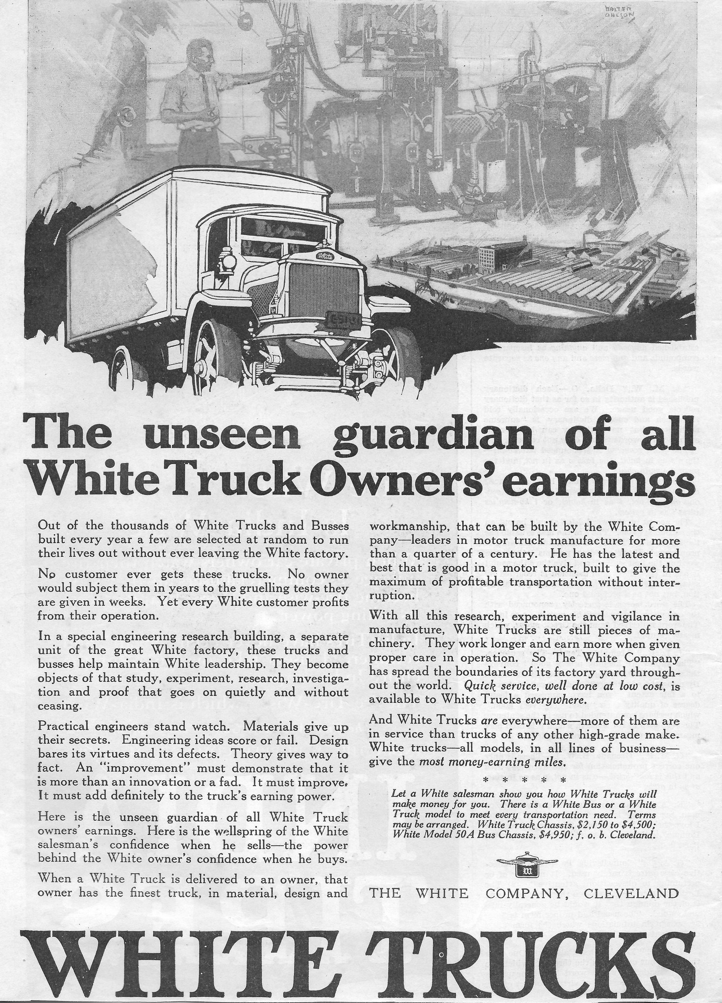 1925 White Trucks. The unseen guardian of all White Truck Owners' earnings