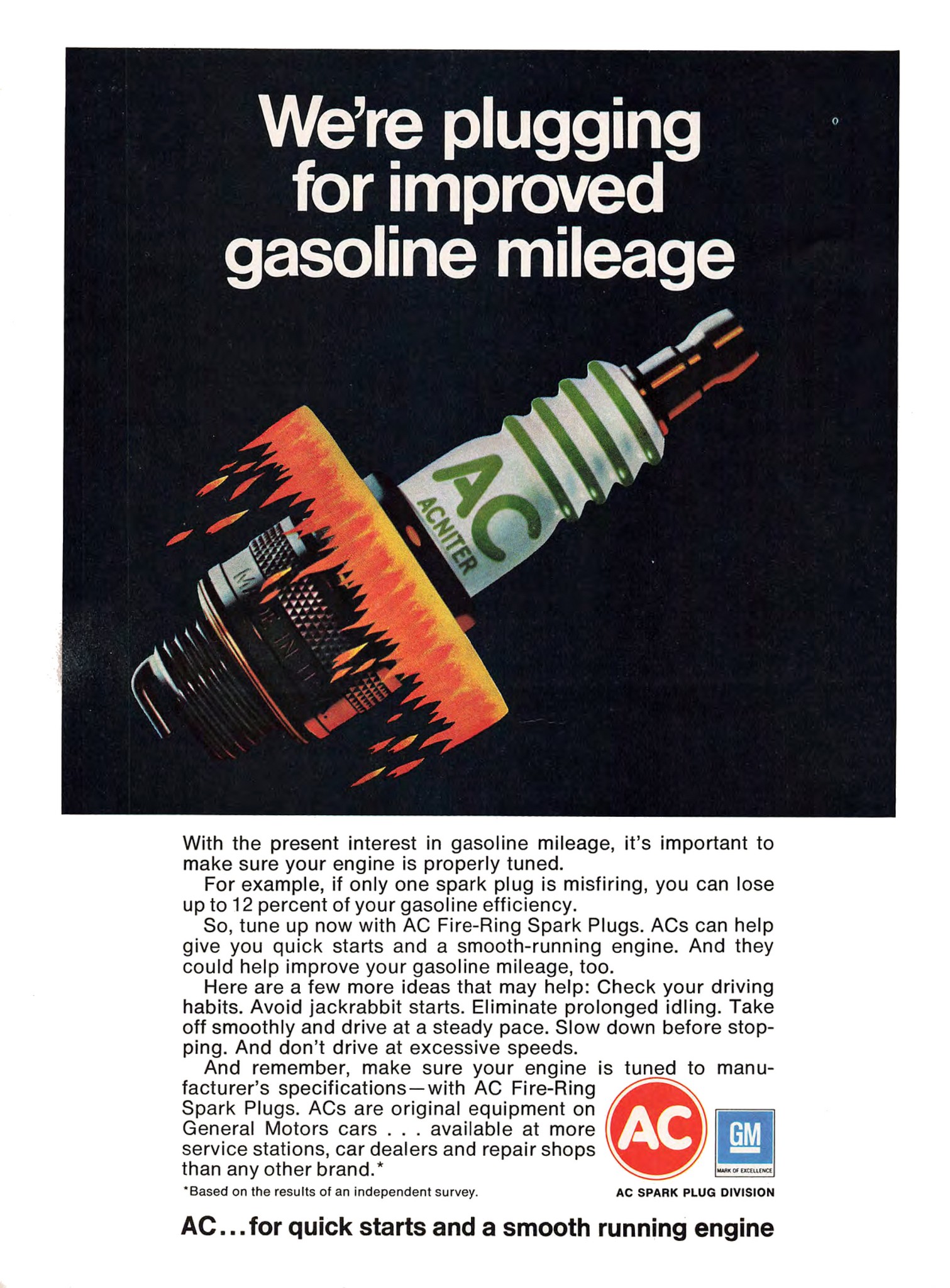1973 We're plugging for improved gasoline mileage. AC