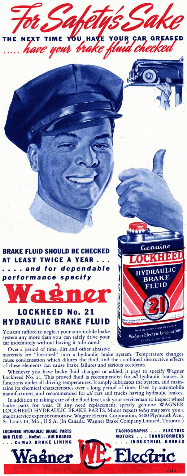 1946 For Safety’s Sake. Wagner Lockheed No. 21 Hydraulic Brake Fluid