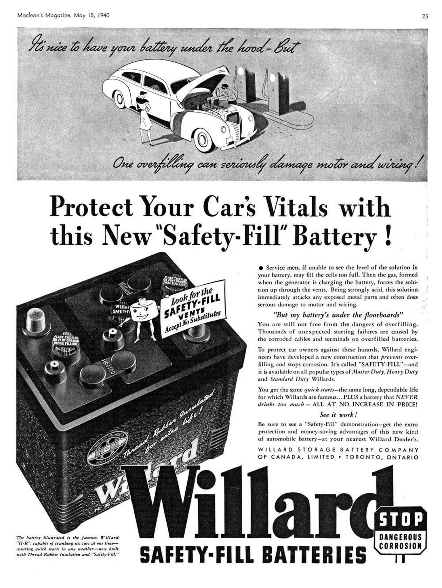 1940 Protect Your Car's Vitals with this New 'Safety-Fill' Battery! Willard (kopiera 1)