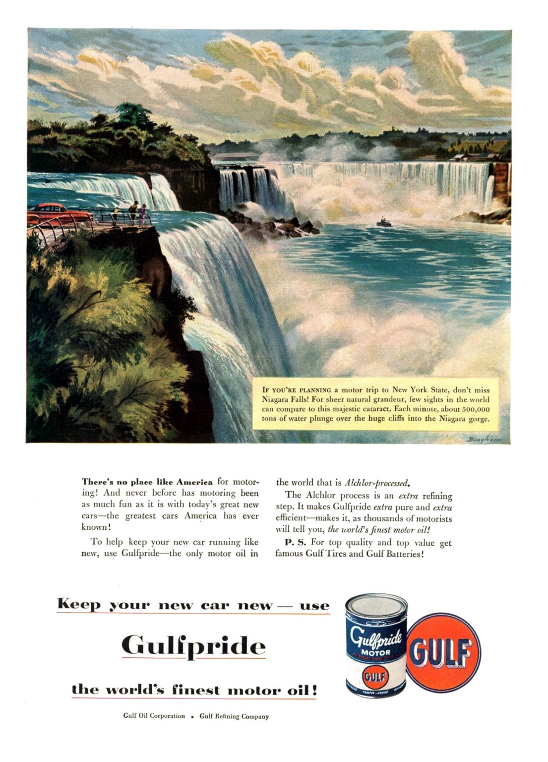 1950 Keep your new car new – use Gulfpride the world’s finest motor oil! Gulf