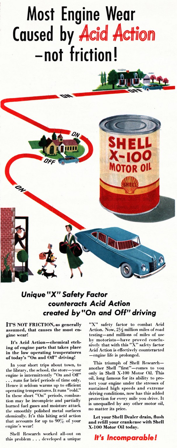 1949 Most Engine Wear Caused by Acid Action – not friction! Shell