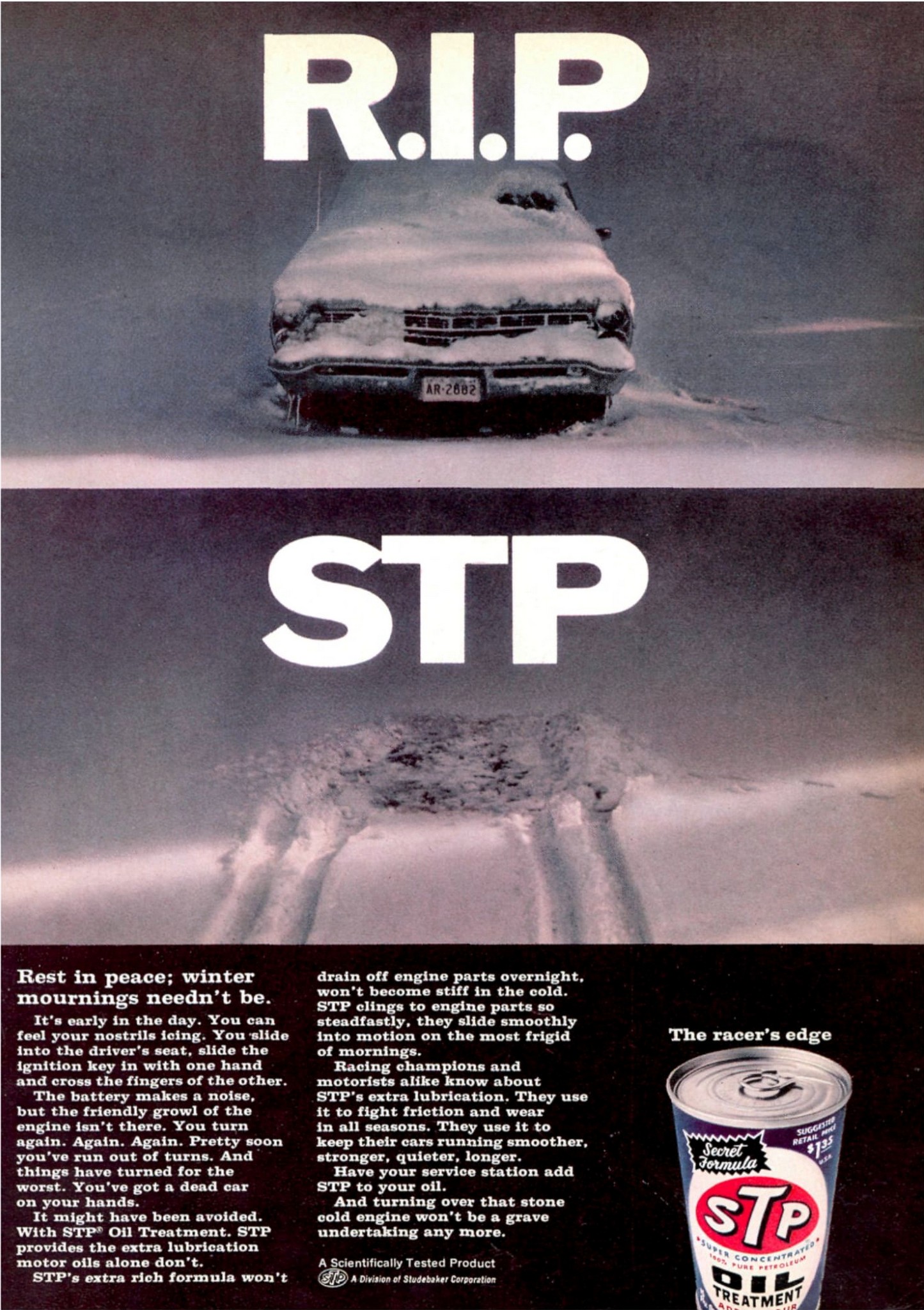 1968 R.I.P. STP. The racer’s edge. STP Oil Treatment