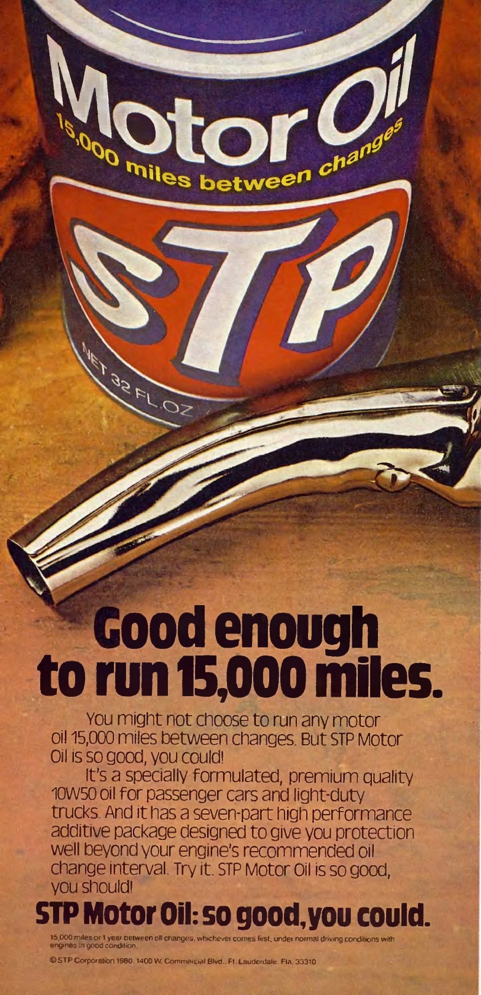 1980 Good enough to run 15,000 miles. STP Motor Oil. so good, you could