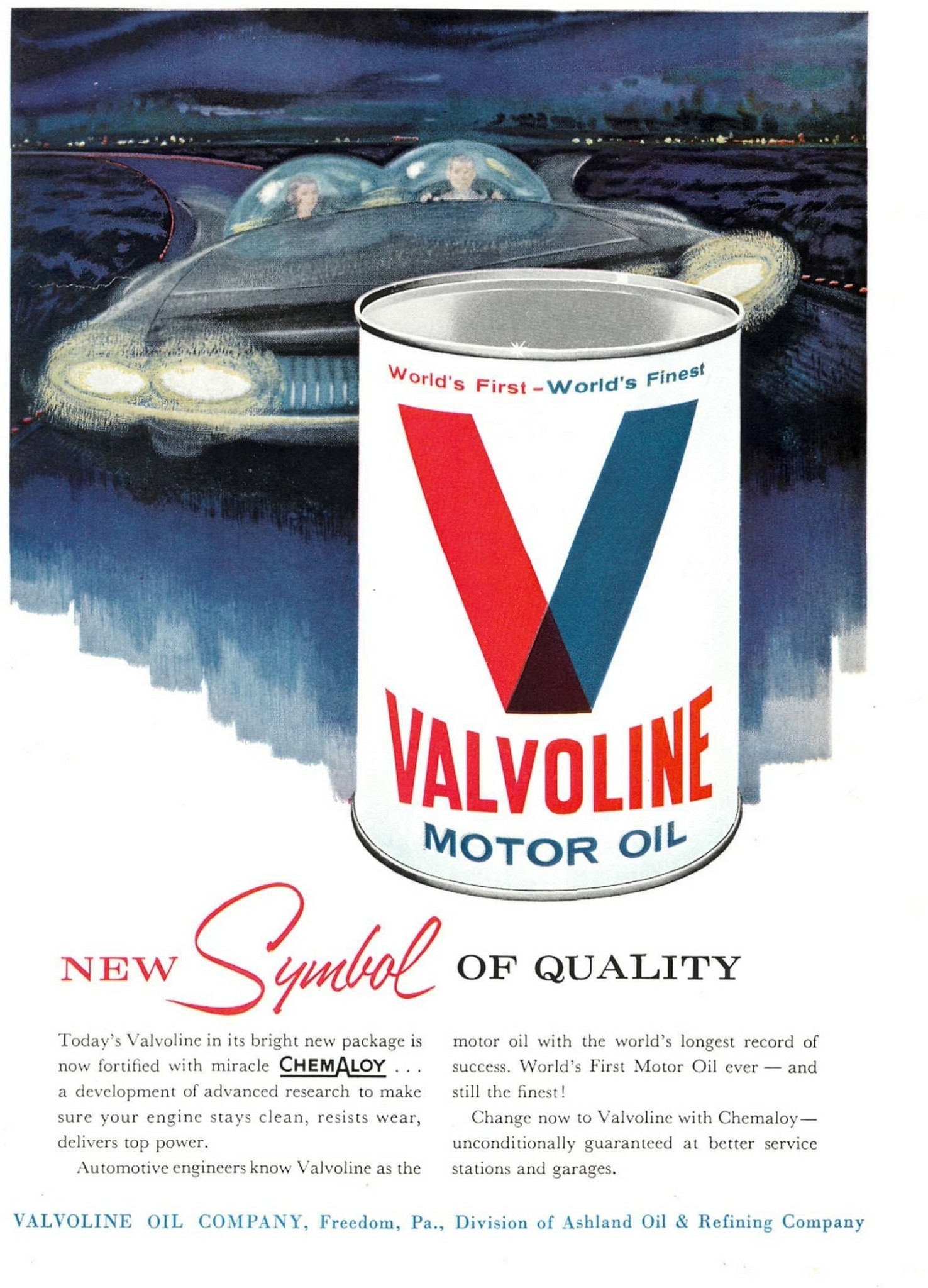 1960 Valvoline Motor Oil. New Symbol Of Quality Chemaloy