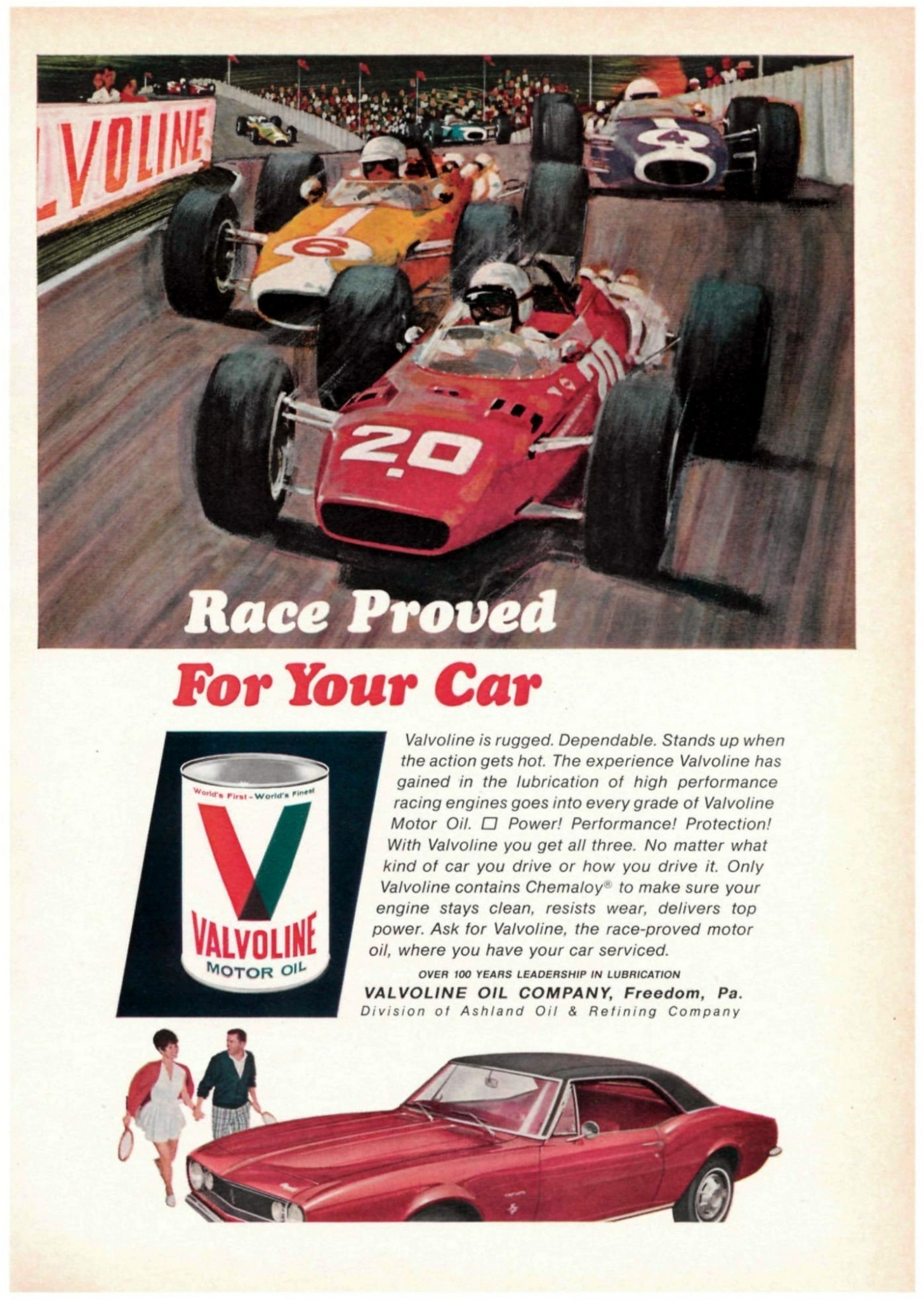 1967 Race Proved For Your Car. Valvoline Motor Oil