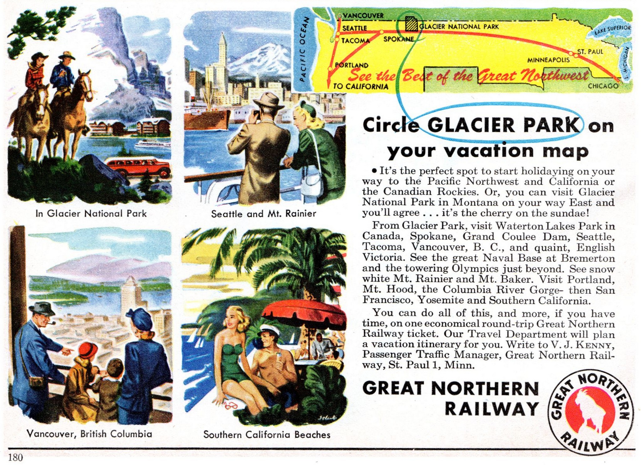 1947 Circle Glacier Park on your vacation map. Great Northern Railway