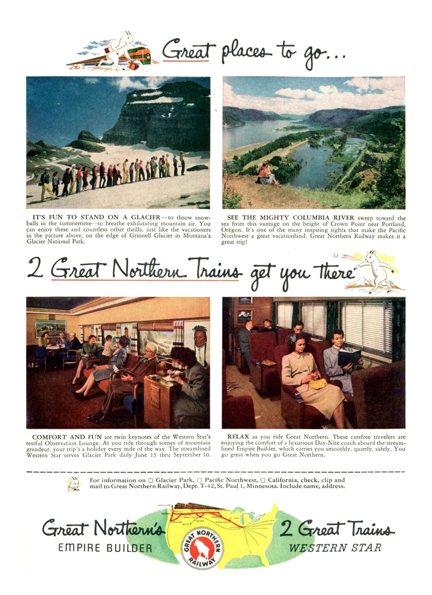 1952 Great places to go… 2 Great Northern Trains get you There. Empire Builder & Western Star